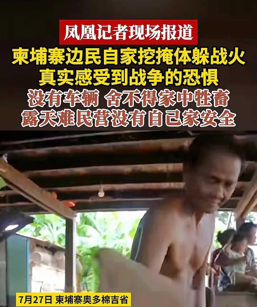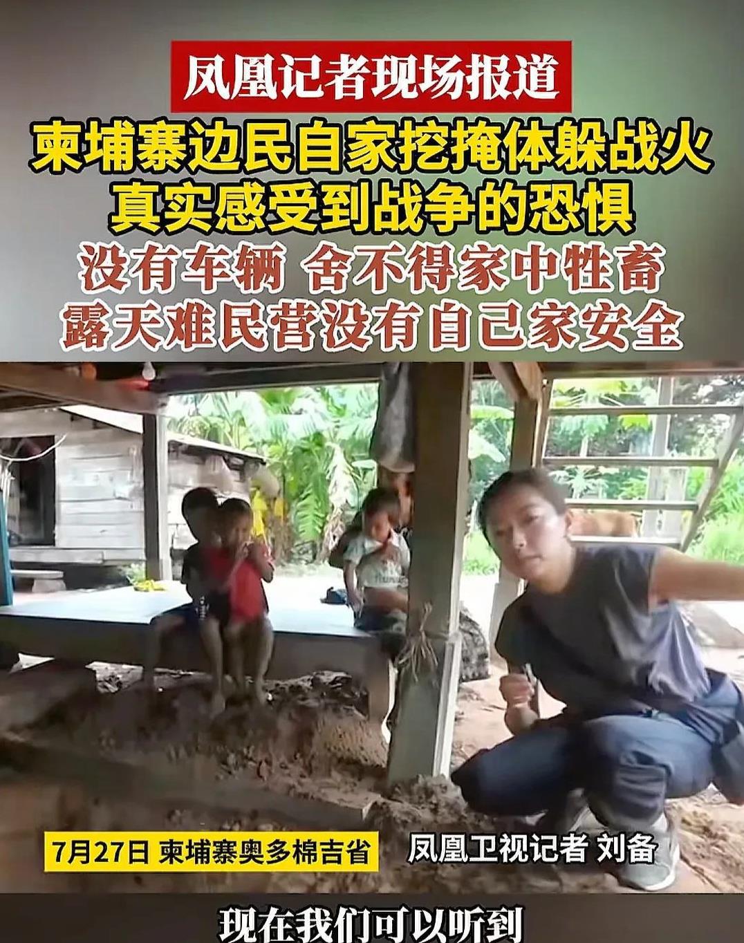 凤凰卫视记者到柬埔寨边境采访不愿离开的村民,村民称没有交通工具,舍不得养牲畜,就