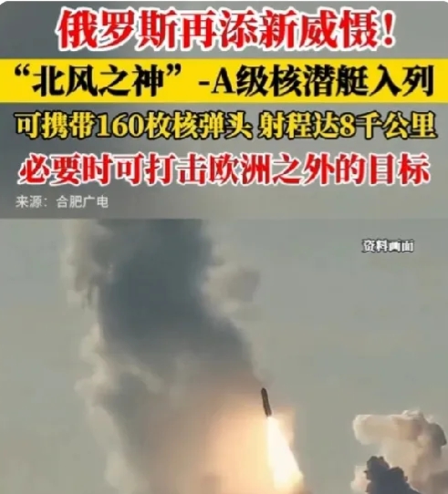 令美国欧洲胆寒的杀手锏。 网曝:令美国闻风丧胆的俄罗斯“北风之神”A级核潜艇第八艘下水了,可搭载160枚核弹头。 这一艘北风之神核潜艇,可以灭掉美国,也可以灭掉整个欧洲的敌对国家。
