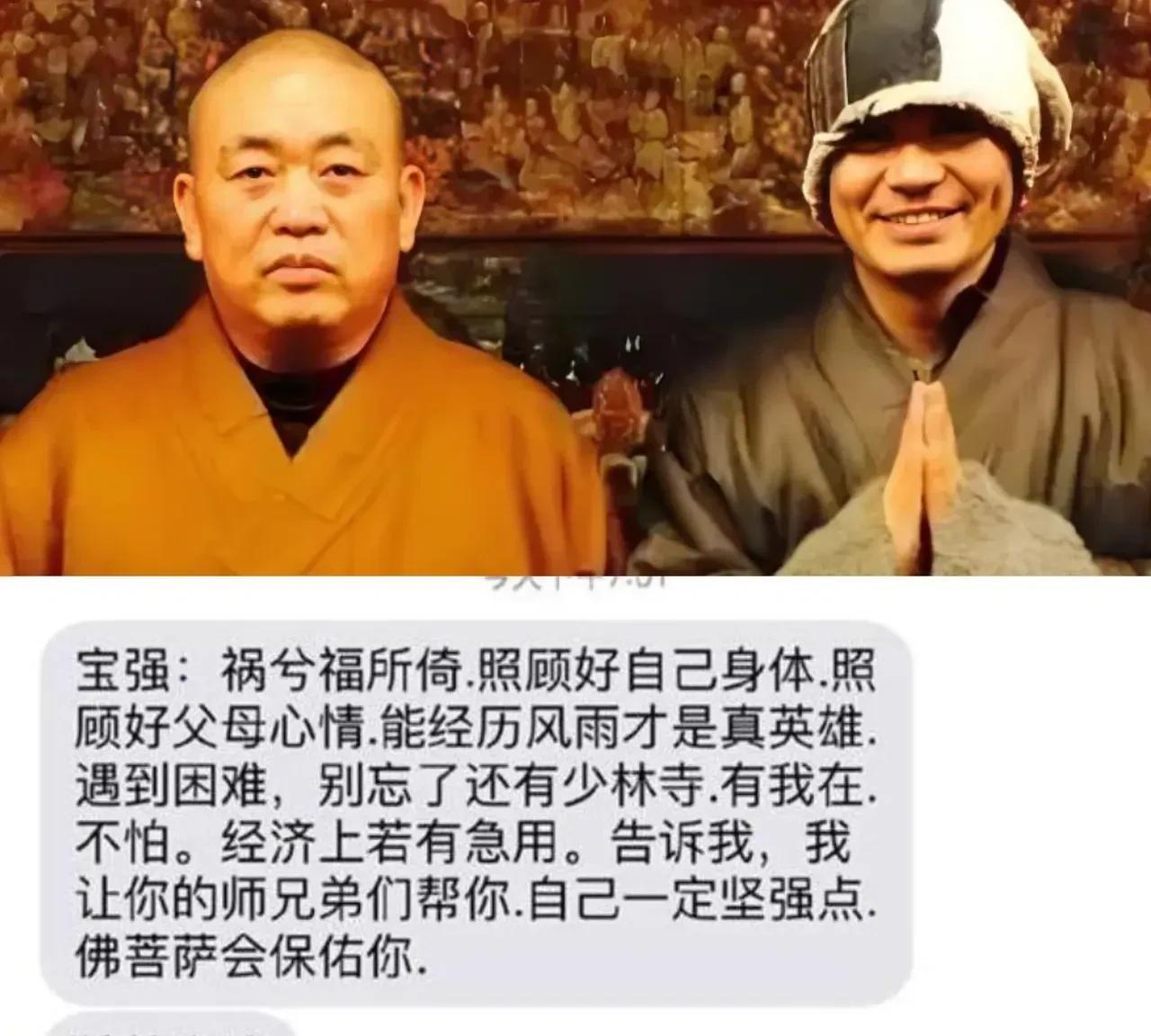 释小龙和王宝强。 王宝强和释小龙都是从小进入少林寺。虽然两人武术都不错,但是王宝强没有法名。 从这张照片可以看出,王宝强憨憨的表面后有许多人不具备的智商。彼时,释小龙已是明星,且武校是他爹开的,王宝强只是花钱来当学员的,又自己掏钱拍这些照片说明人家从小就对人生有一定的规划。
