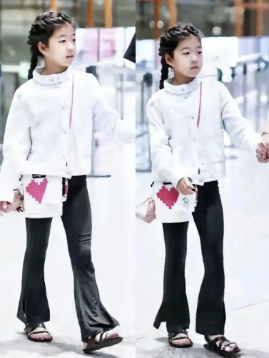 小姑娘走路辫子一甩一甩的,活泼又灵动,眼神里居然带着点章子怡的气场!镜头前一点都不怵,腿又直又长,走路姿势优雅得像模特,这灵气简直是从骨子里透出来的。看来妈妈实力强就是不一样,孩子走路都带风,腰杆挺得笔直,浑身上下都是自信。