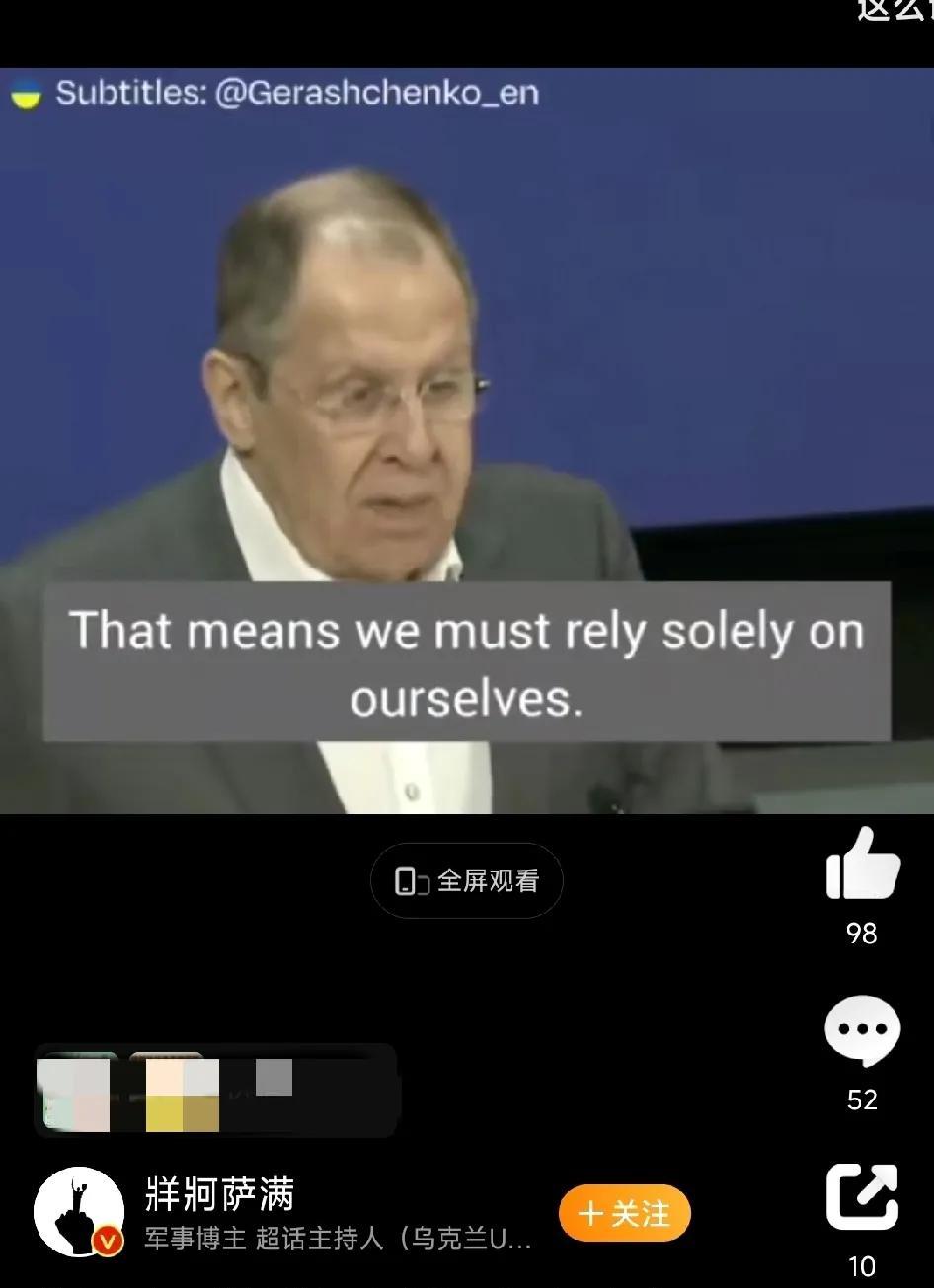 拉夫罗夫:“俄罗斯历史上第一次孤军奋战,对抗整个西方世界。第一次世界大战和第二次世界大战期间,我们都有盟友,现在,我们在战场上没有盟友。这意味着我们必须完全依靠自己。” 评几句:谁说的俄罗斯没有盟友?朝鲜不是派了几万人的部队去支援俄罗斯了吗?不仅派了军队,朝鲜还提供了大量的炮弹和其他军用物资给俄罗斯。难道在这样的情况下,俄罗斯还认为朝鲜不是他们的盟友? 再说了,难道只有派军队支援你们作战,卖军火给你们才算盟友吗?那些没有在你们与乌克兰开战的时候在背后捅你们的刀子的国家,那些不顾西方制裁依然进口你们的石油和天然气的国家,难道他们也不能算是你们的“盟友”?没有这些国家在后面支持着你们,你俄罗斯还能顶到现在?恐怕一年时间都不用,就崩溃了吧。 这话说得,好像俄罗斯真的很牛逼的样子,还以一己之力对抗整个西方世界,看把你们给能的。