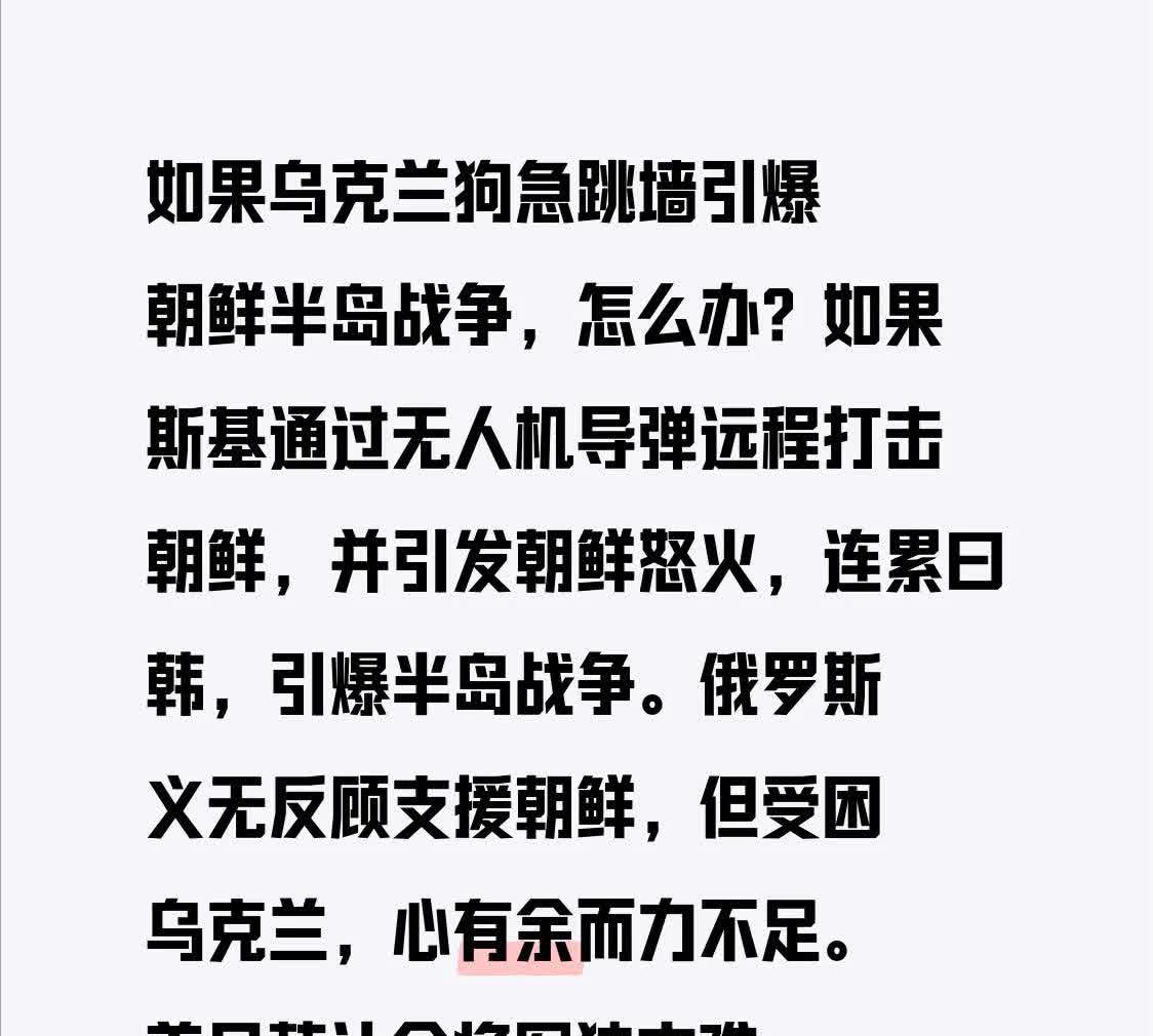 如果乌克兰狗急跳墙引爆朝鲜半岛战争,怎么办?如果斯基通过无人机导弹远程打击朝鲜,并引发朝鲜怒火,连累曰韩,引爆半岛战争。俄罗斯义无反顾支援朝鲜,但受困乌克兰,心有余而力不足。美日韩让金将军独木难支,我东大是第二次援朝,还是为了经济发展而隔岸观火呢