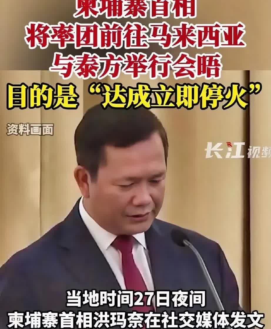 柬埔寨宣布了! 这一天终于来了,柬埔寨看到了希望! 27日,柬埔寨首相洪森在其社交账号上宣布,将于28日亲自率团前往马来西亚吉隆坡与泰国举行会晤,双方将讨论地区和平方案。 显然,柬埔寨不愿意主动求和,但迫于联合国、东盟及各国的劝和促和,及国内民众的强烈要求,最终不得不选择妥协。 现在,两国之间的冲突已经持续了四天四夜,双方伤亡人数均已过百,泰国方面10万名平民疏散在紧张气氛中撤离,而柬埔寨方面8万多名平民则在匆忙地撤离大使馆及国际机构的工作人员。尽管双方均已宣布谈判,但在前线的士兵却没有停火的命令,仍在继续与敌军进行交火。 此次谈判能否达成停火协议,还有待观察。说实在的,此次双方发生的冲突,对泰国而言,是有好处的。虽然没有达到打击柬埔寨侵犯泰国领土的目的,但至少重塑了泰国的面子。对柬埔寨而言,此次威望遭到了世俗的挑剔,回头是岸,才能补救。