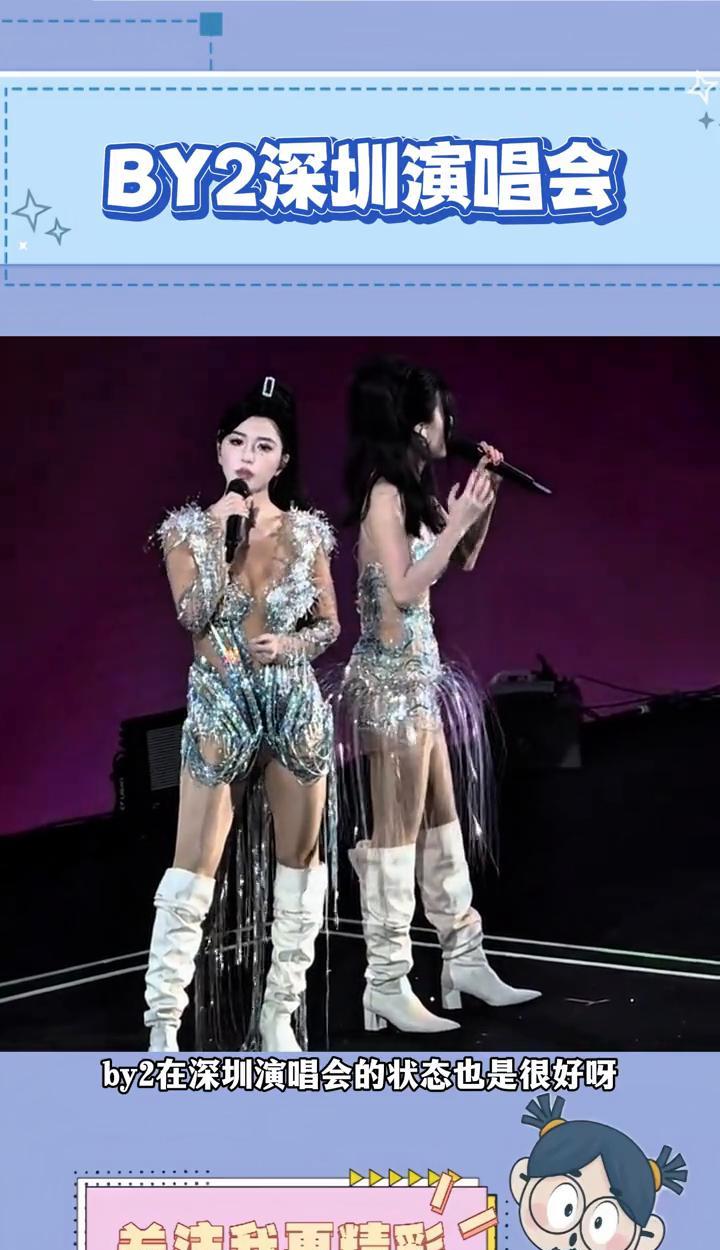 BY2深圳演唱会。 BY2在深圳演唱会的状态也是很好,虽然do脸后没有那么火了,但至少音色不会变。两人唱双重魔力真的是回忆暴击,感觉她们已经出道好久了,结果都还没过三十五,今年也是开启了演唱会。大家现在还能分得清哪个是妹妹哪个是姐姐吗?