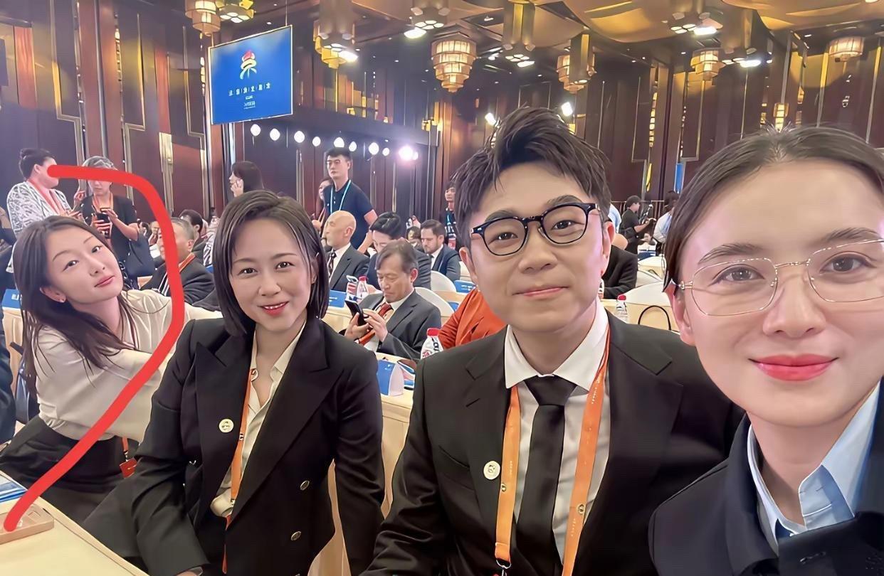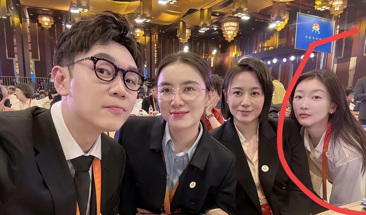 张天爱跟素人合影,胯真的好宽,大宅院似的