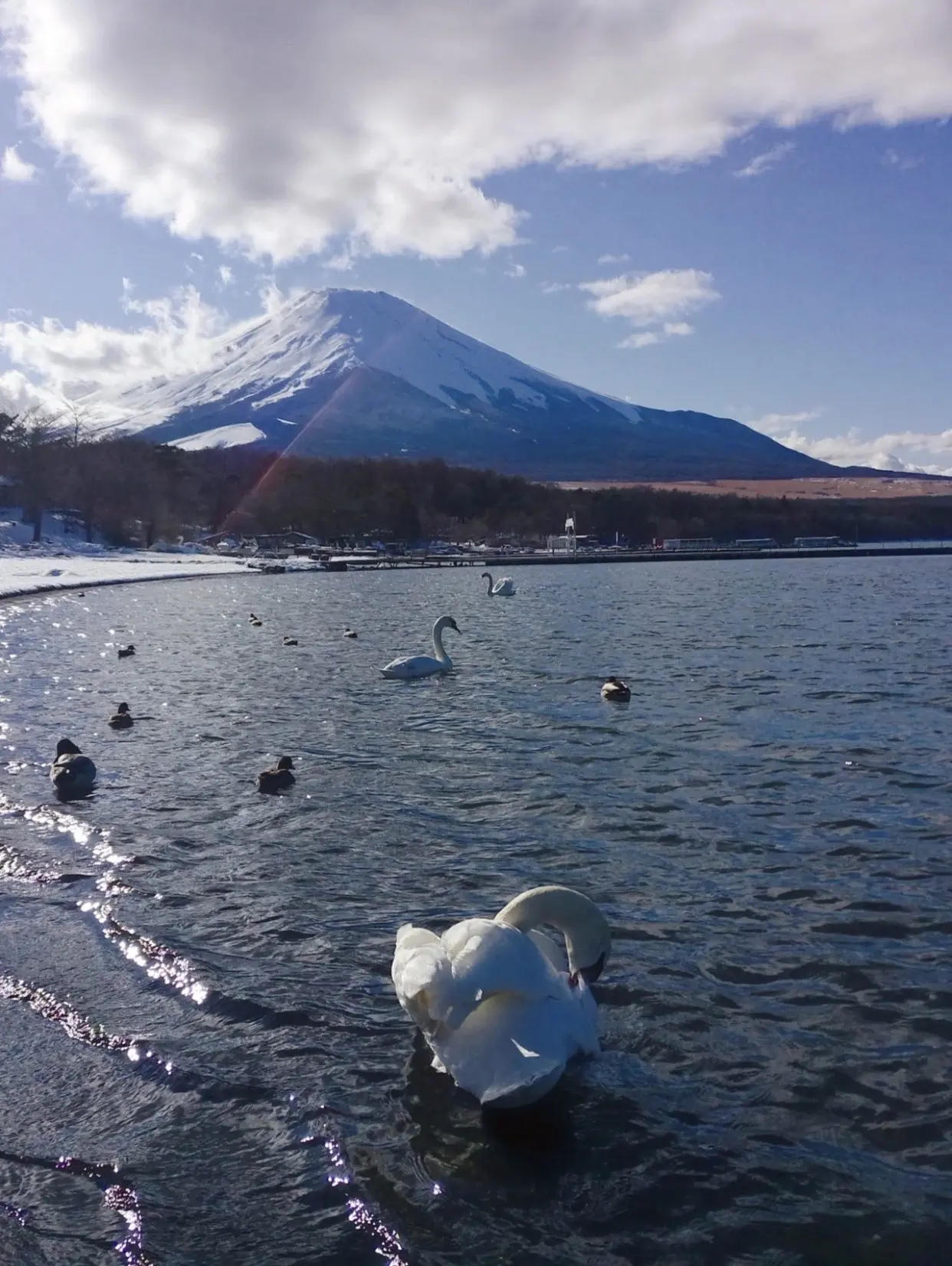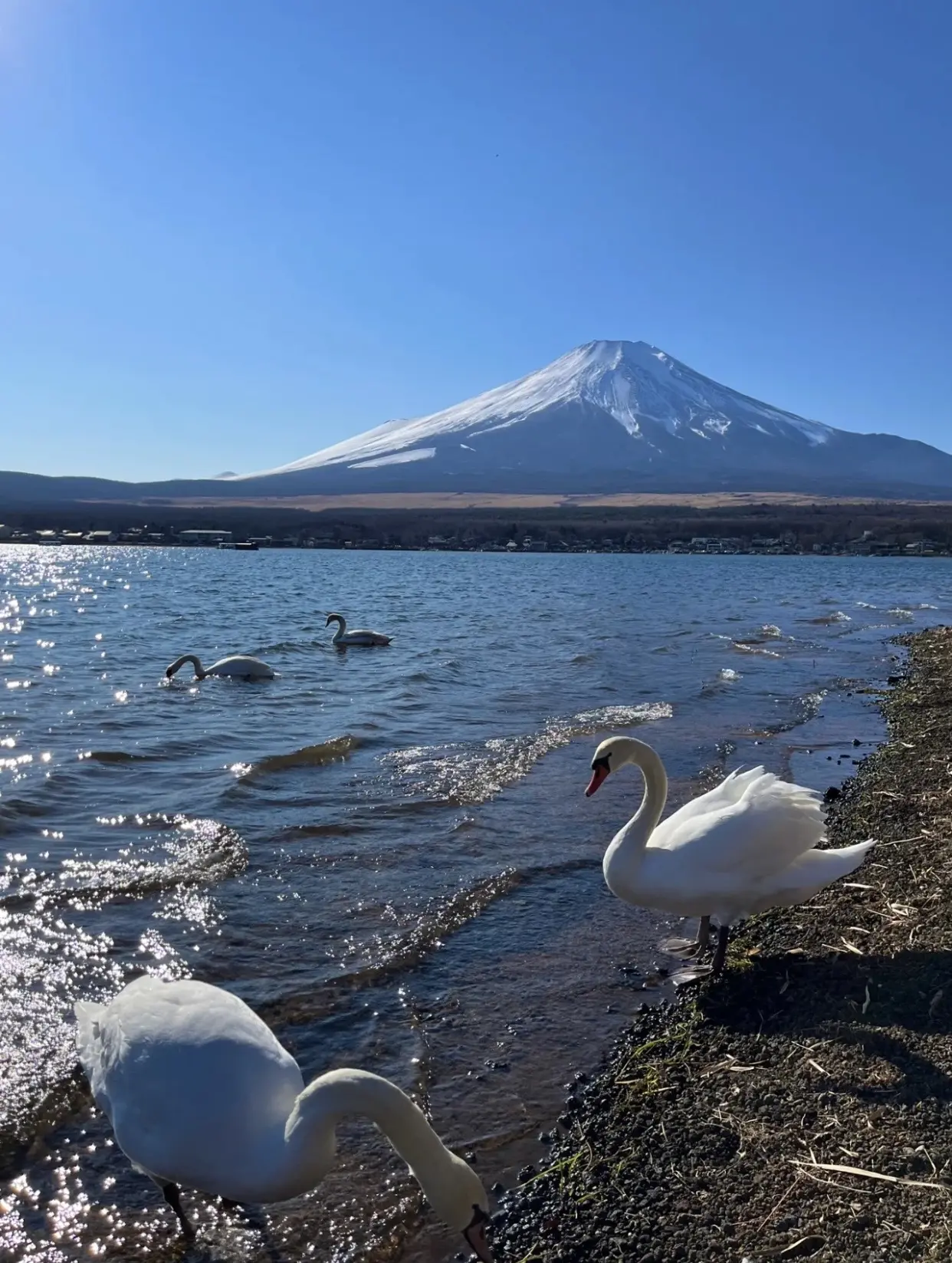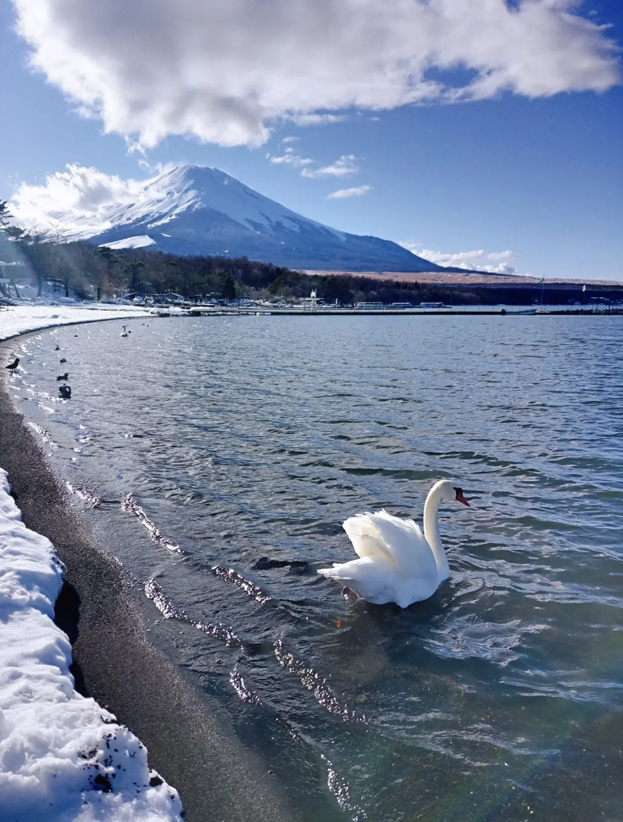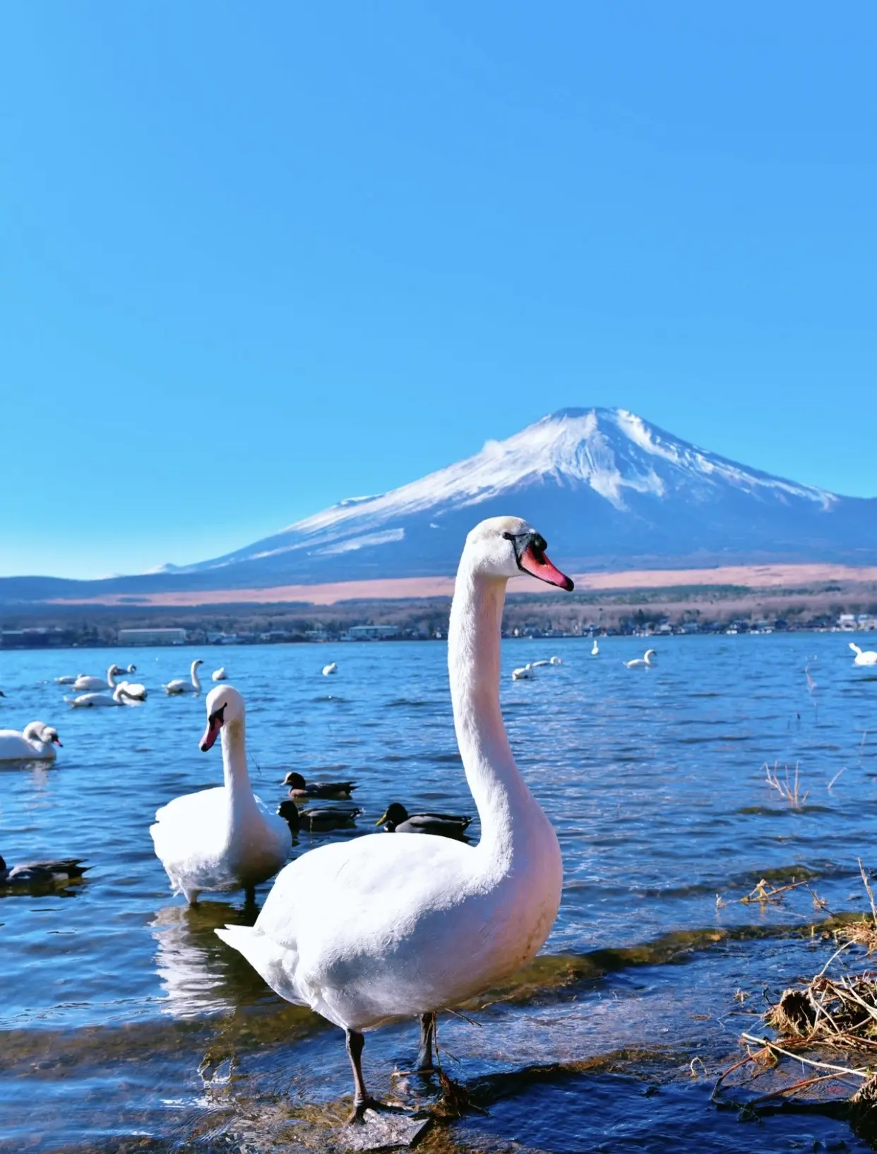 山中湖作为富士五湖中最大的湖,却常常被很多人忽略,大部分人来到富士山第一去到的都是河口湖。 山中湖周边除了有花之公园,最有特点的莫过于是五湖中唯一拥有大批野生白天鹅的栖息地。 温馨提示:最佳拍摄时间为上午10点以前,天鹅比较凶猛投食注意安全,保护动物人人有责。 山梨県南都留郡山中湖村平野410番13