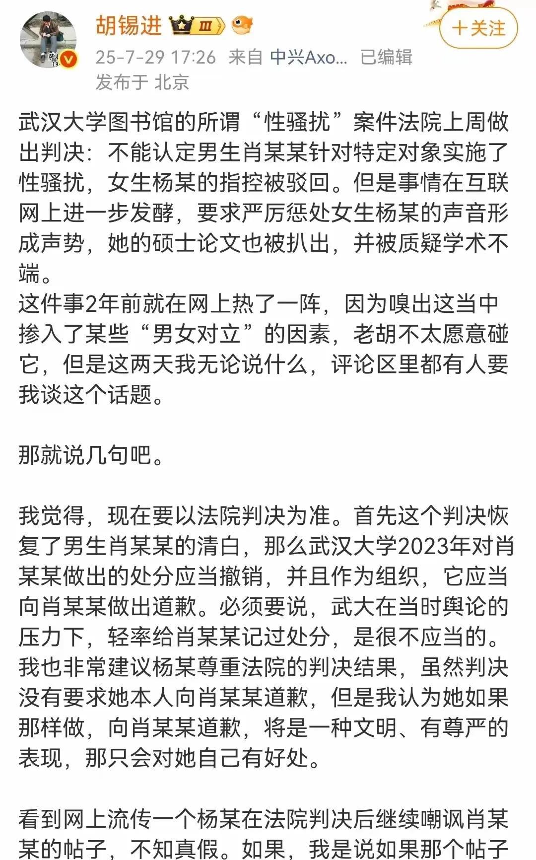 胡锡进等大v发声!梅新育等武大校友发声!武汉大学却是岿然不动!不知道他们是断网了