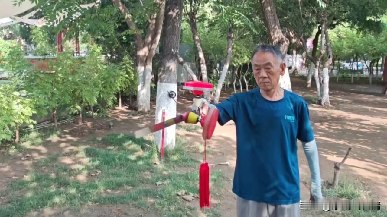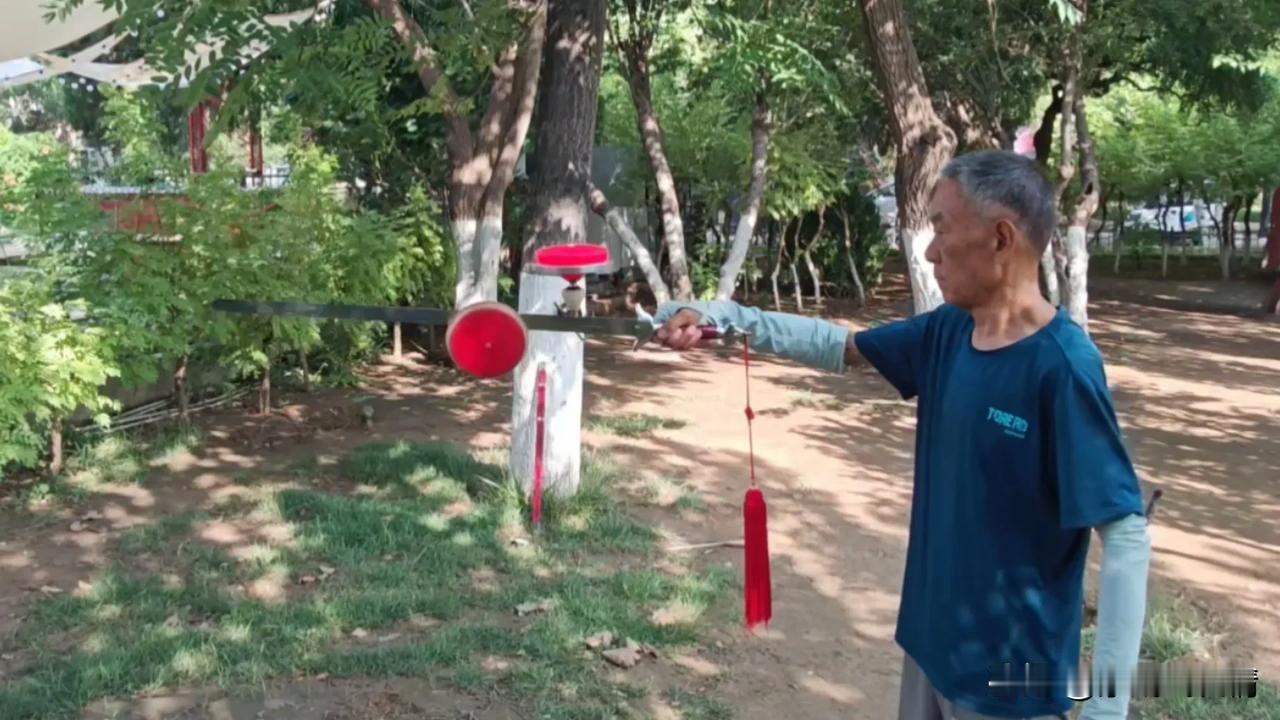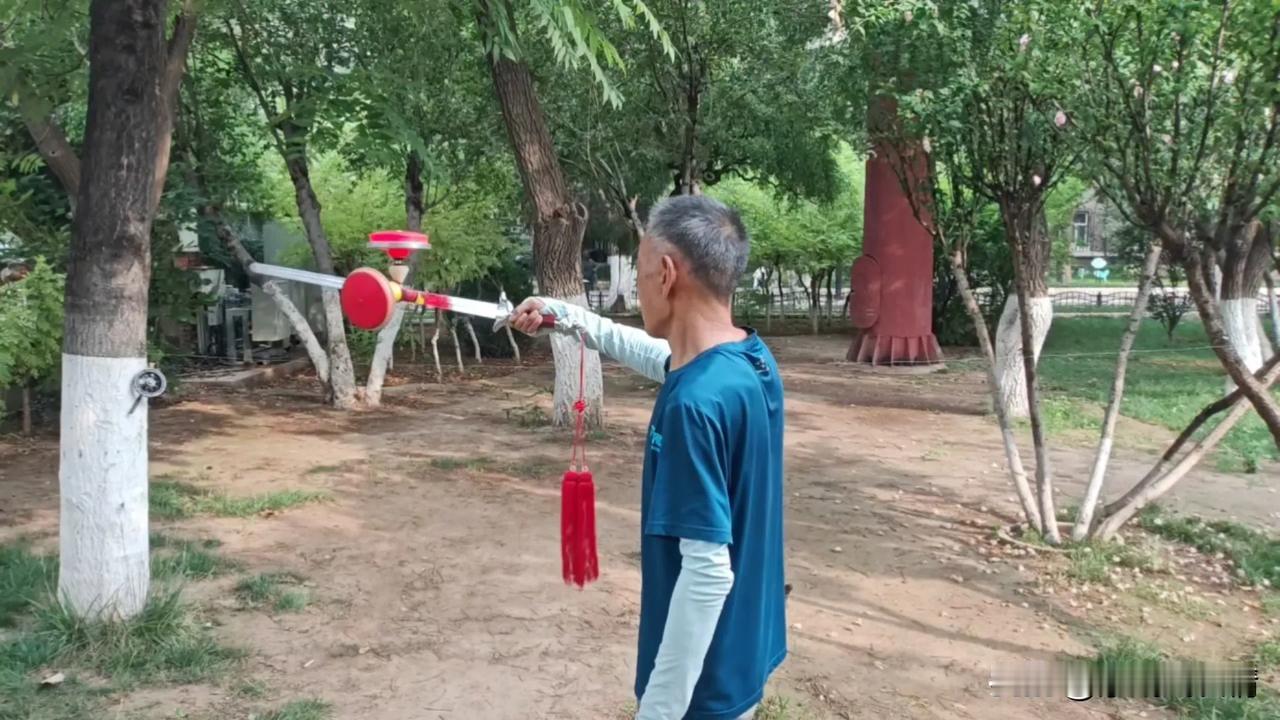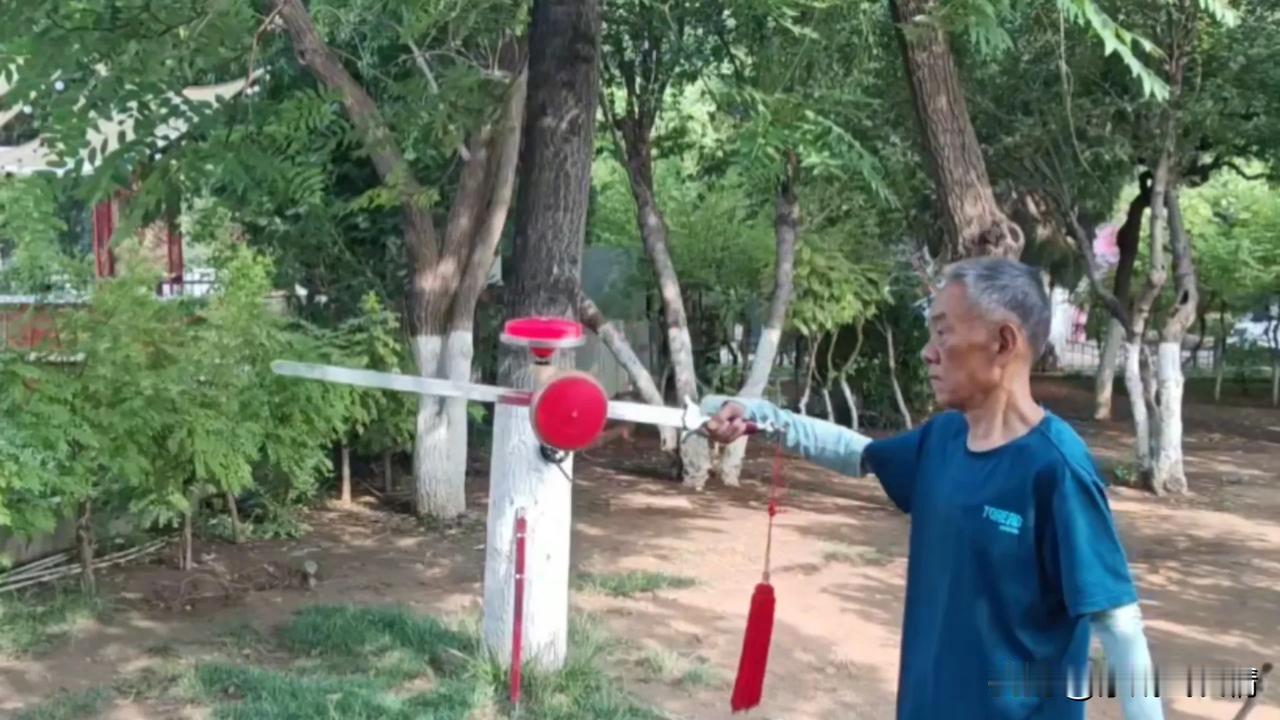 大爷晨练瞎捣鼓新玩法-剑刃推磨!