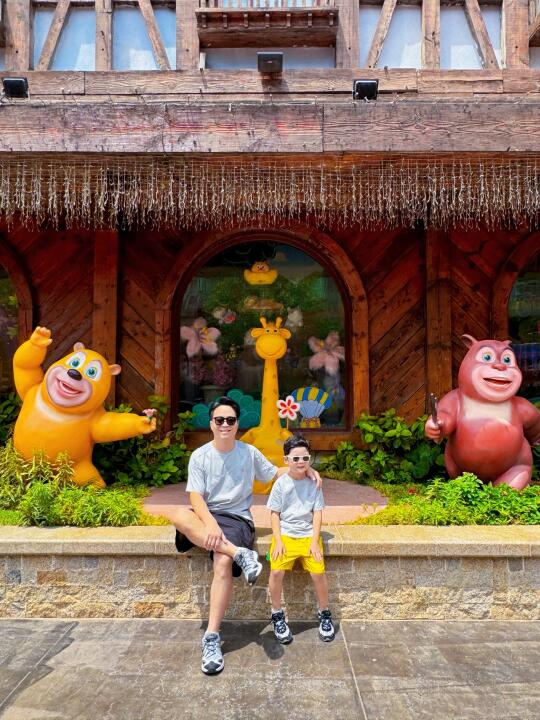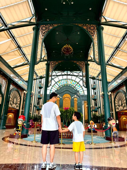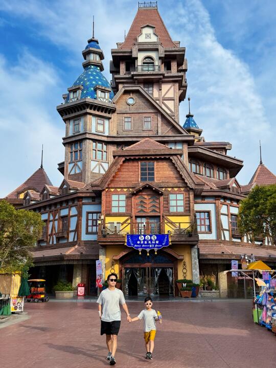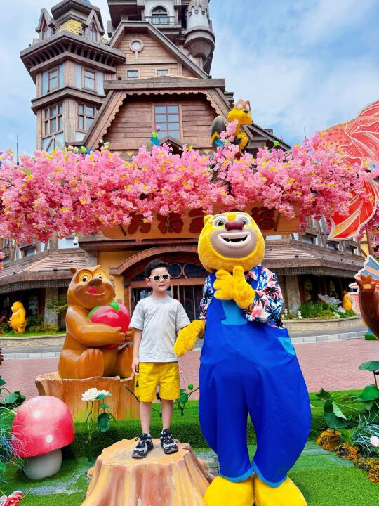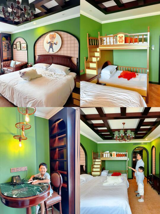 ✨先在酒店🏨办理入住,放好行李!!(我们这次住的是熊出没亲子房,房间融合了主题乐园元素,还准备了儿童童鞋和洗漱用品,还给小朋友准备了免费的小零食很贴心!酒店提供免费的接驳车可以往返乐园!早点是中西式的自助早餐有当地特色的胡辣汤和烩面,还有西点蛋糕和咖啡,好丰盛!酒店是英式贵族风装修真的很高级!)