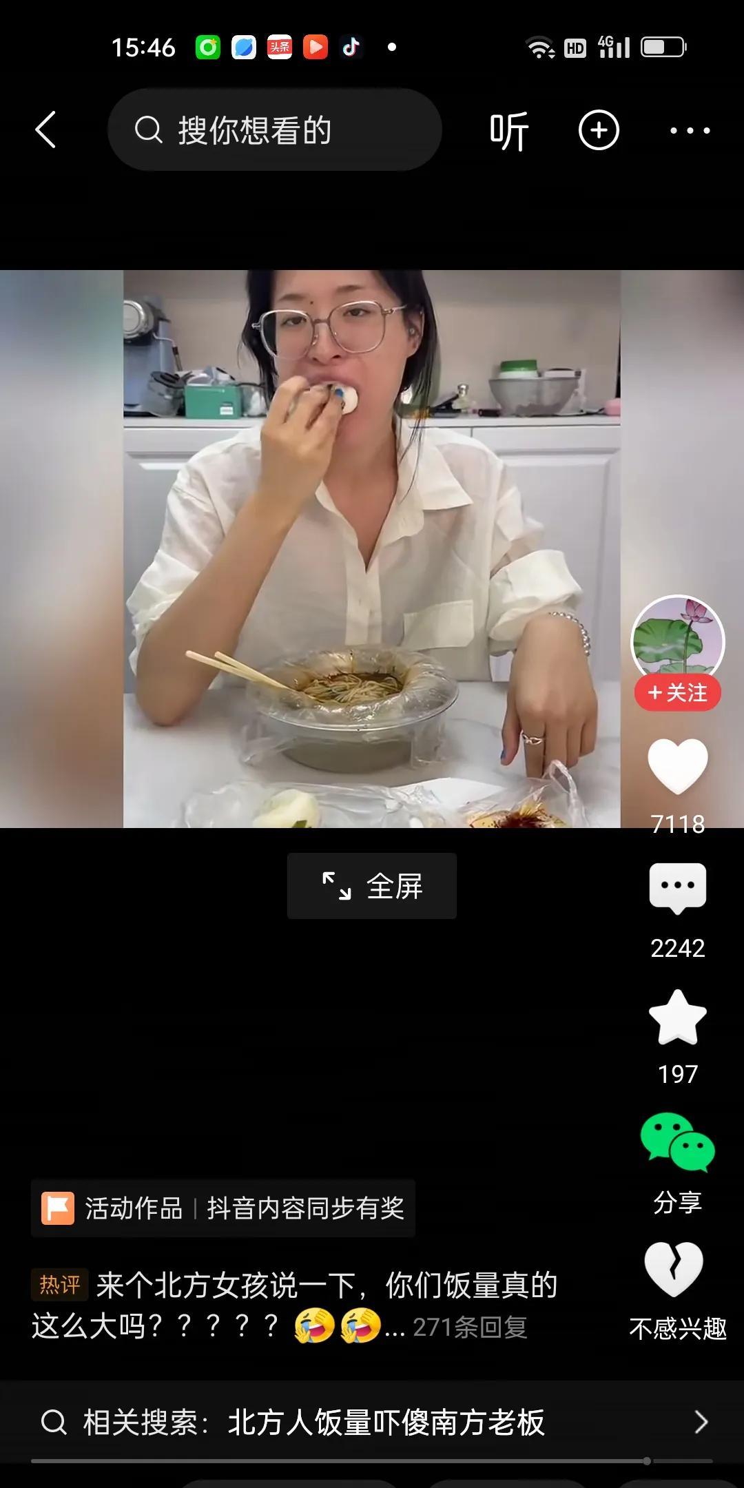 南方男人给北方女人带餐回来,一碗米线,还有8个包子。女人对男人说带这么点够谁吃啊?男人惊讶道,8个包子了。女人说,8个包子,这么大点,老娘一口一个,三下五除二就吃完了。男人说你是猪啊?女人说,你说对了,我们北方女的比猪还能吃。男的无语,嘟囔着,南方男人的饭量都比不过你们北方的娘们。