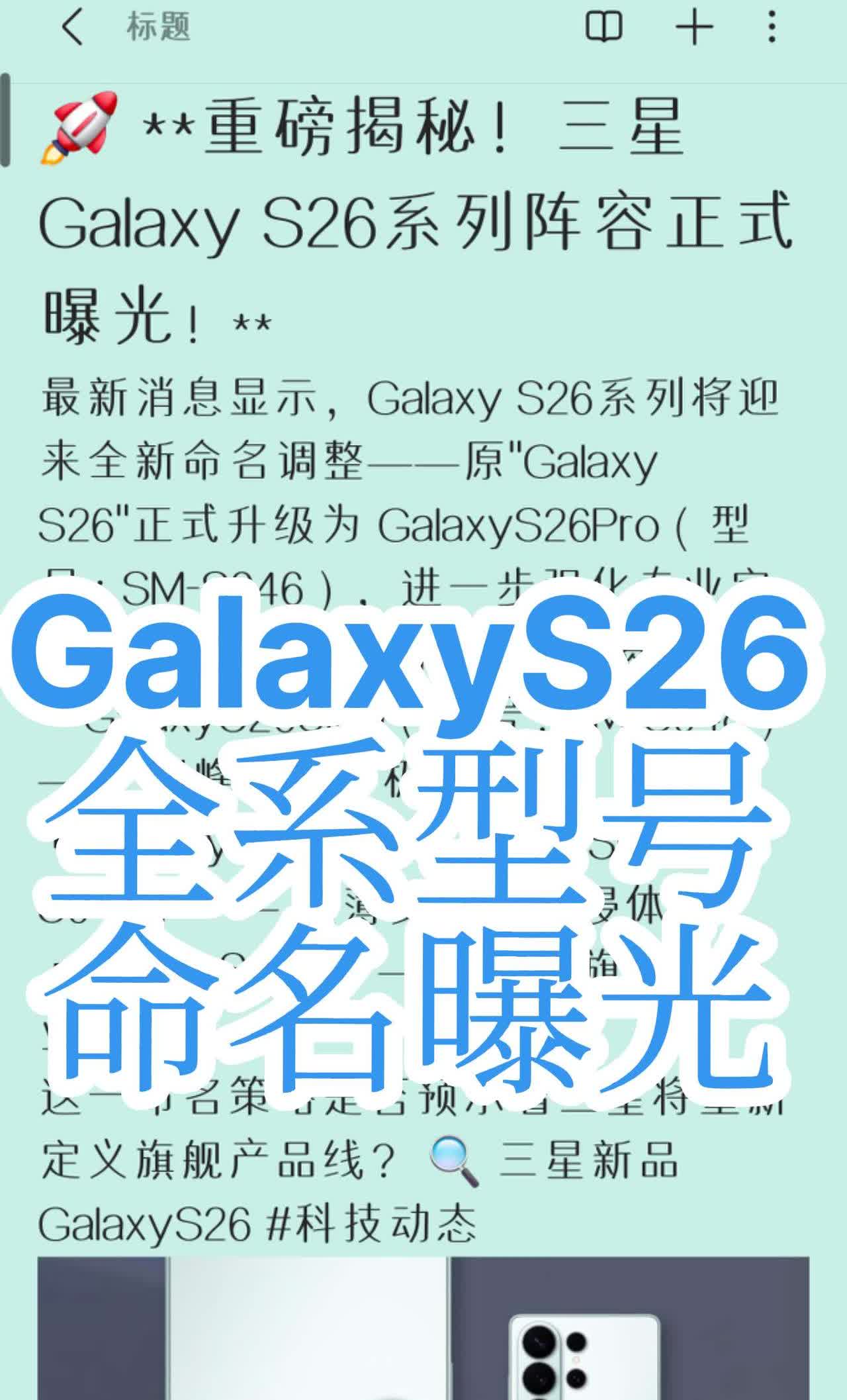 🚀**重磅揭秘!三星GalaxyS26系列阵容正式曝光!** 最新消