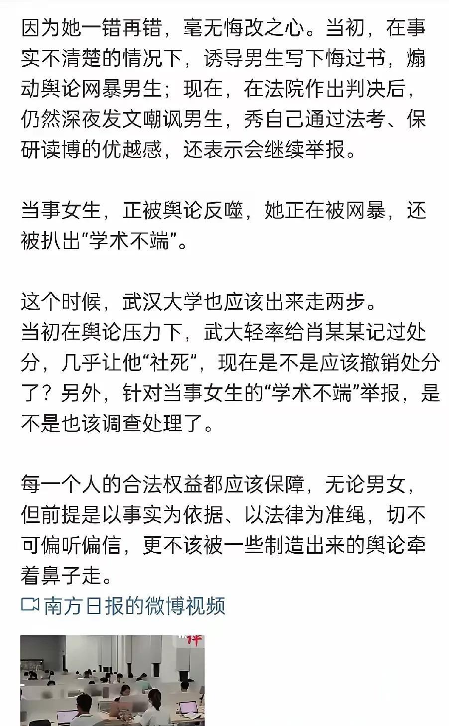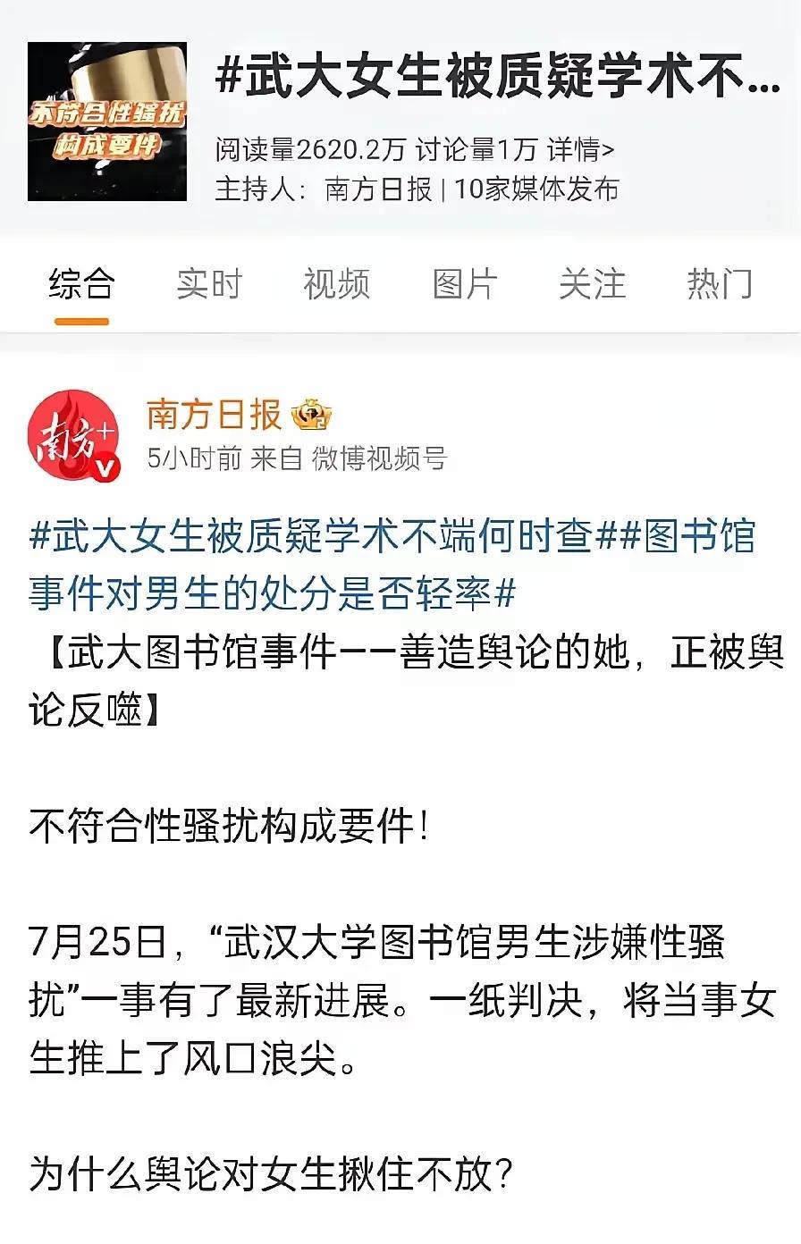武汉大学犯众怒!南方日报2个问题问的好!“武大女生被质疑学术不端何时查”?“图书馆事件对男生的处分是否轻率”?武汉大学敢回应吗? 点点关注不迷路,文章右上角关注下小编账号,感谢支持与厚爱。 #武大性骚扰案# #武汉大学诬告案# #武汉大学# #武大图书馆# #湖北高校事件# #武汉大学网暴# #武大伤人事件# #武大处分风波#