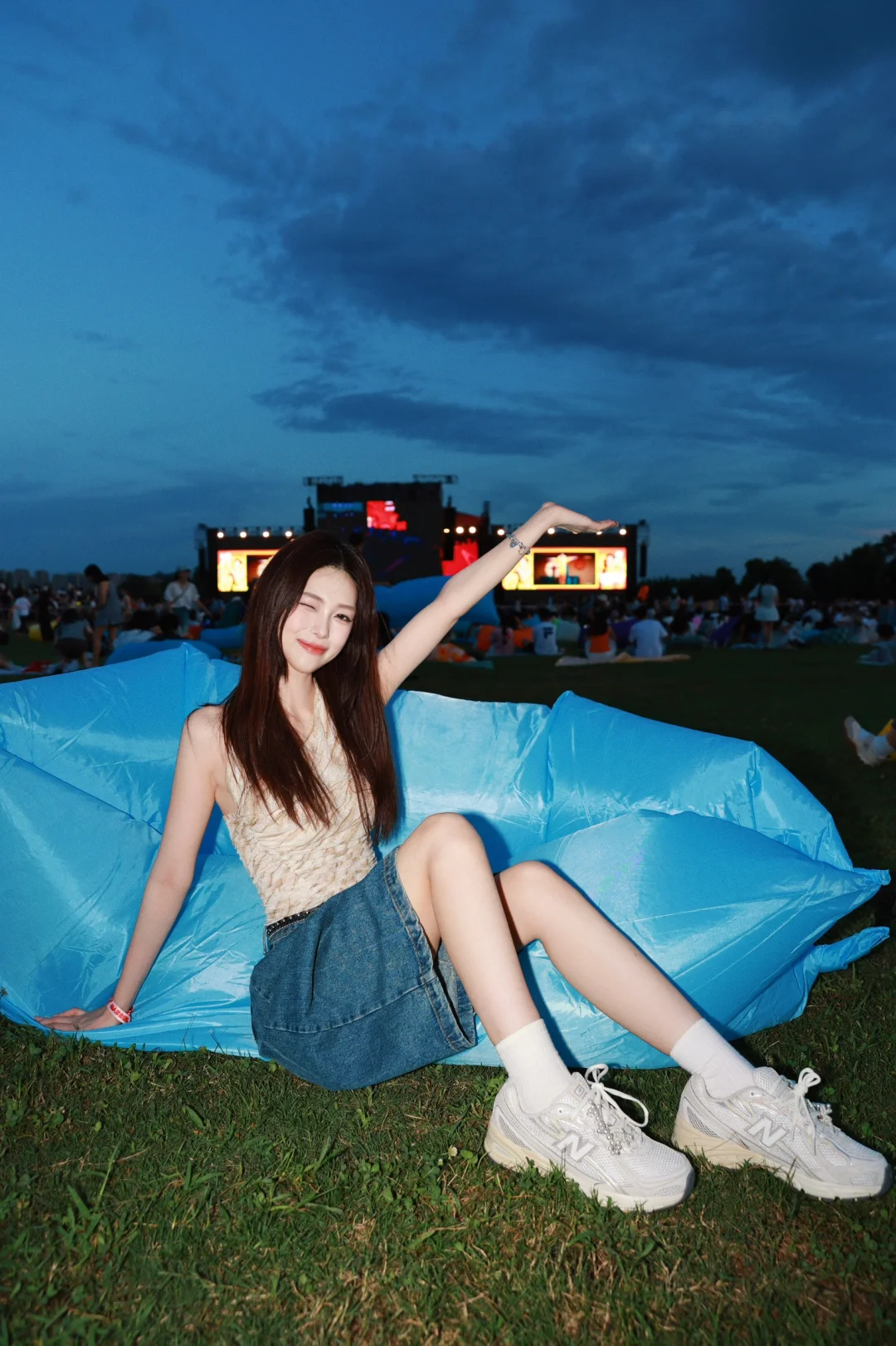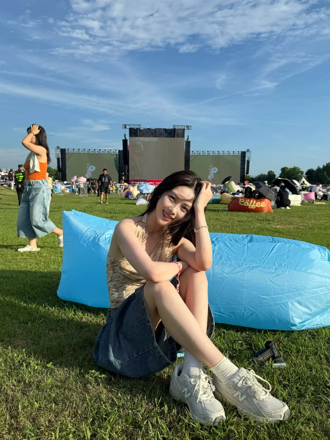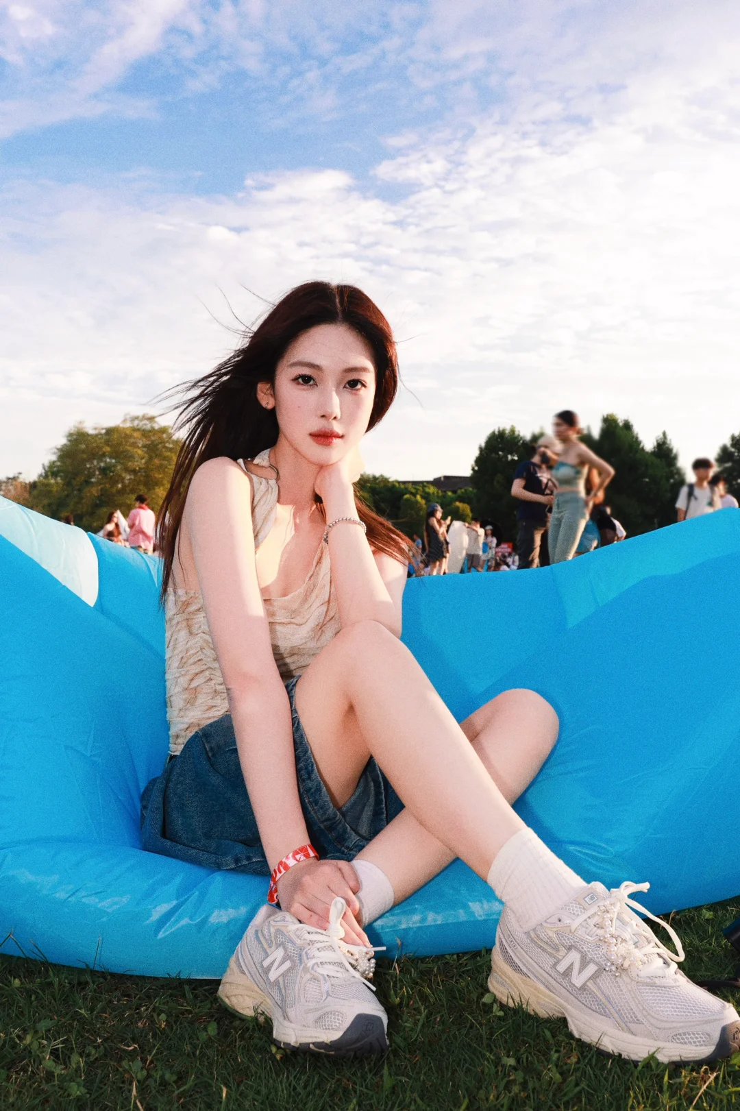 人生第一次去音乐节! 风和阳光都刚好~love 哪有 live 好 闯入落日狂欢派对 牛仔蓝撞色霓虹光 音乐节永不褪色的入场券 踩一双米色 new balance 740 上衣呼应鞋子 在鼓点与夕阳的裂缝里 做移动的彩色火焰 轻便得像没穿 却蹦整晚不累 稳稳接住每一个 pogo 的暴烈瞬间 无论是嬉皮风还是韩女辣妹 这双 740 总陪我闯进最燥的人群 下次音乐节继续做彼此的共犯吧