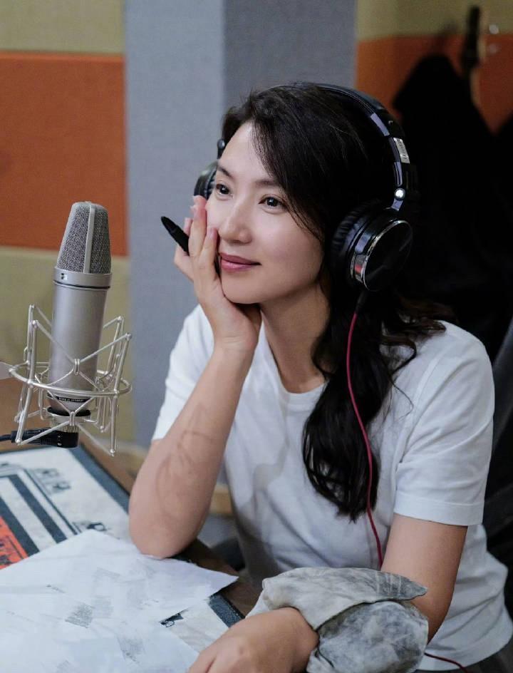 陈好在进行配音工作,但稿子后面为什么要画那么多铅笔素描排线!