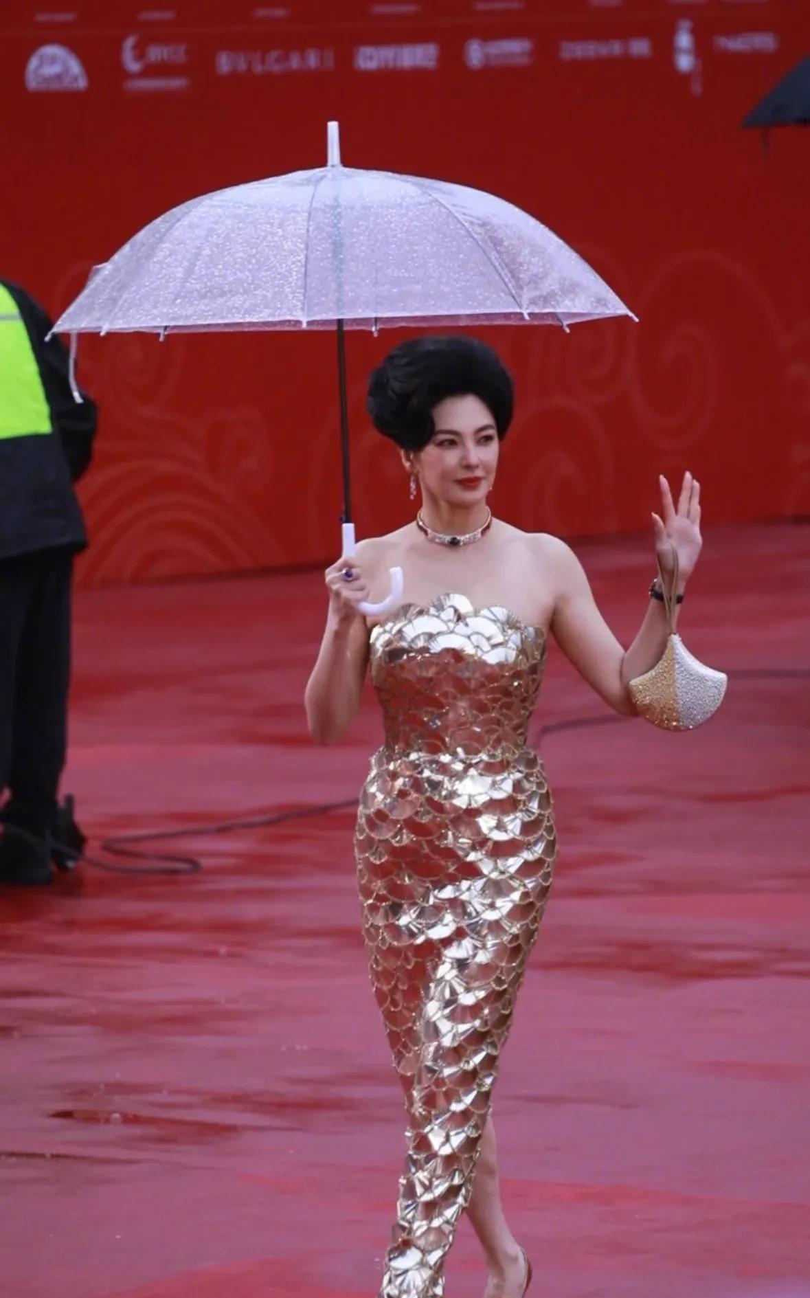 张雨绮红伞一撑,金鳞裙裹出逆天曲线,皮肤亮到晃眼,浅笑挥手,气场碾压红毯,这性感直接杀疯 !