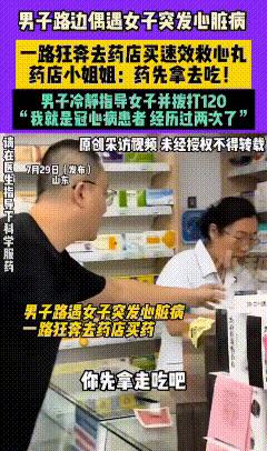 山东,男子出门闲逛时,突然前方女子倒在地上,他凑近一看,吓得立马转身就跑,一路狂奔去药店买速效救心丸,药店小姐姐:药先拿去吃!男子冷静指导女子,并拨打120,被问及为啥知道女子是心脏病?男子回答:我就是冠心病患者,经历过两次了! 山东一男子在城市街头悠闲地走着,准备消磨下午的时间,就在他走到一个人流稍多的路口时,突然前方传来一声轻微的呼吸急促声,他下意识抬头看去,却被眼前的一幕吓得心跳加速——一位女子猛地倒在了地上,脸色苍白,四肢无力。 男子没有犹豫,迅速冲了过去,靠近女子后他细看之下,他发现女子的眼睛微微张开,嘴巴微微动了几下,显然是想说些什么,但没有力气,男子意识到,这很可能是心脏病发作了,他的心跳一瞬间加速,思绪乱作一团,但又立马回过神来。 记忆闪回,自己曾因心脏病几次差点命丧黄泉,曾经因为心绞痛差点倒下过,曾亲眼看到医生用速效救心丸给自己急救的情景,那种心脏病的痛,自己太熟悉,身边已经有太多次类似的经验了,于是男子冷静下来,迅速做出了反应。 他抬起女子的肩膀,将她扶得坐直,随即他从裤袋里掏出手机,拨打了120求助电话,接通后简短地告诉接警员:“女士心脏病发作,我已经准备了药物,正在等救援,”然后他没有再多说什么,而是把注意力全都放在了女子身上。 一旁的路人见状,纷纷停下脚步,有的开始围观,有的准备帮忙,但男子的目光冷静且坚定,没有任何慌乱,他清楚自己该做什么,就在此时,身旁的药店刚好传来了脚步声,男子瞥见了药店的小姐姐,顿时心生一计,连忙跑了过去。 “速效救心丸!麻烦给我一盒!”他声音急促,药店小姐姐看到他神情焦急,立刻递给他药盒。男子没有丝毫犹豫,转身跑回女子身边,将药迅速拿出。 “吃下去,”男子低声说道,他将药片递到女子嘴边,轻轻扶着她的下巴,帮助她服下药,此刻他的目光变得更加专注和坚定。 药店小姐姐站在一旁,依旧紧张不已,男子显然很冷静,像是早已习惯了这种局面,药片下肚后,男子轻声叮嘱:“稍等会,急救人员马上就来了。” 过了大概五分钟,120的急救车终于赶到了,救护车停下后,几名医护人员迅速上前,男子立马指向倒地的女子,简短解释了一下事情经过。 “你怎么这么冷静?难道你是急救人员吗?”救护人员在确认情况后,有些惊讶地问道,男子摇了摇头低声说:“我自己是冠心病患者,经历过两次发作了,能看得出,心脏病发作是典型的症状。” 急救人员愣了一下,似乎对男子的冷静反应感到一丝佩服,救护车的车门拉开,医护人员迅速将女子抬上车,准备送往医院,车轮转动的声音渐渐远去,街道恢复了之前的喧嚣,但男子却没有马上离开,他站在那里,目送急救车消失在视线中,心中难免升起一股复杂的情绪。 这场突如其来的意外发生得极其迅速,却也展现了男子那份果断和深思熟虑的应急反应,在那一刻,他完全放下了自己的情绪和恐惧,迅速调整了心态,只为了能及时救助那位陌生女子,他没有被眼前的危急场面吓倒,反而凭借自身的经验,冷静指引她度过了生死一线的时刻。 看着急救车渐行渐远,男子心头轻轻一叹,感叹着自己的运气和那个不期而遇的陌生女子,生活里总有些细节不曾预料,但也正是这些让人措手不及的时刻,成就了人与人之间的连结和温暖。 信息来源:河南广播电视台民生频道 2025-7-30