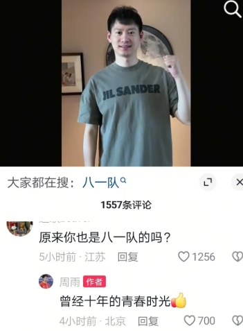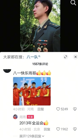 军装虽脱,军魂永铸。 #樊振东# 八一建军节,大雨胖沱,一个更新了抖音,一个更新了微博。 周雨整了一个变装,军装是男人最好的医美。评论认识了中尉,二等功,三等功。 可惜这个系列,没有樊少尉。