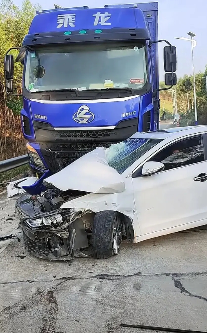 完了,较真的乘龙先生来了!乘龙大卡和某品牌汽车发生交通事故。
