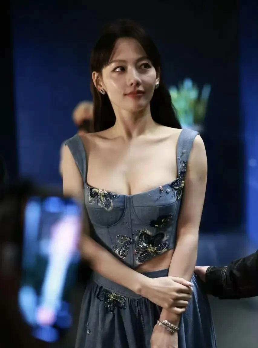 张嘉倪穿牛仔刺绣套装,身材凹凸绝了,皮肤嫩到掐出水,随便一动,性感直接炸场!