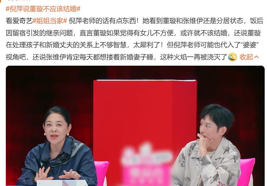 倪萍太给力了! 一句话戳穿了董璇在婚姻里的错误。 倪萍说:“董璇就不该结婚,把老