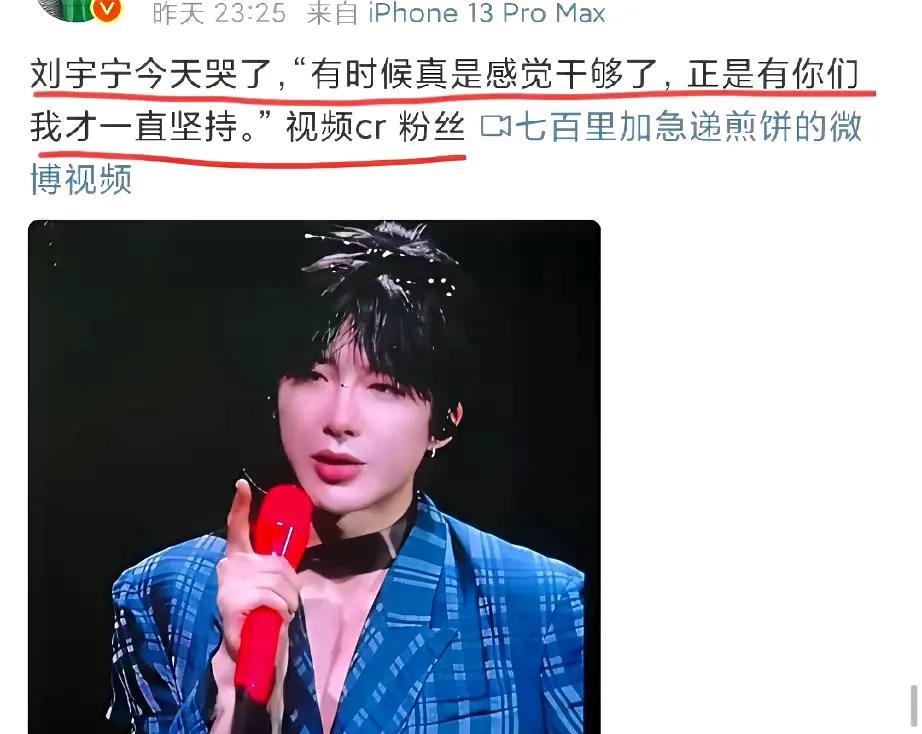 这段视频聚焦刘宇宁武汉演唱会,呈现双向奔赴的情感羁绊: 舞台上,刘宇宁穿蓝格纹套装、持红麦表演,讲到“因粉丝才坚持下去”时动情落泪、抚胸拭泪;台下粉丝或拭泪或举机记录,满是热忱。现场惊喜播6年粉丝心声VCR,成为催泪弹——从2019到2025的约定,让“偶像因粉丝续航,粉丝因偶像热忱”的情感,在灯光与欢呼中具象为双向成长的感动注脚。