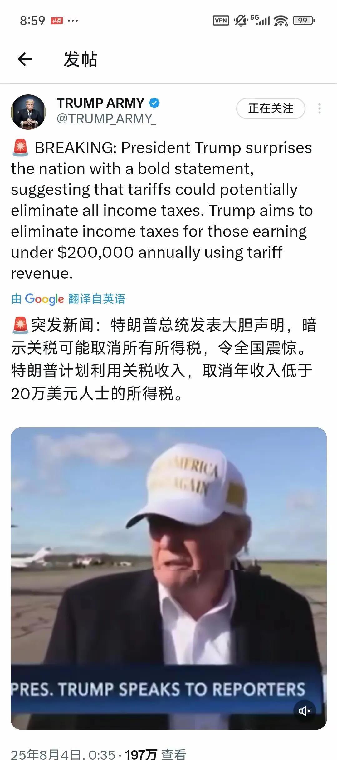 特朗普会不会在梦中把自己蹬醒?报道称,美国总统特朗普8月4日发表惊人言论,暗示用关税取代个人所得税。正计划用关税取消年收入低于20万美元人士的个人所得税。 有些人说话是为了感动自己,可特朗普说话是为了震惊自己。因为都知道,是美国95%以上百姓通过购买加征关税后的进口商品承担了特朗普的关税成本,如果特朗普真的用关税替代个税,这就等于美国人换了一种缴纳个税方式。 说好听这是取之于民用之于民,说难听就是羊毛出在羊身上。但这么说已经是在赞美特朗普了。因为特朗普这样做的真正受益人美国的高收入者。因为美国最高个税高达到37%,那些收入几十亿几百亿几千亿美元的富人,顷刻间将因此直接获得巨额收入,而特朗普本人就是收益的高收入者之一。他是在给自己取消个税! 怎么想到的?我不仅是懂王,我还是天才。特朗普会在梦中欢快到蹬腿,并把自己蹬醒? 但是,这真是特朗普的梦。根据已公布的数据,2024年美政府个税收入达2.4万亿美元,同期总进口额则为4.1万亿美元。问:特朗普平均关税要加征到多少才能从4.1万亿美元的进口商品上得到可替代个人所得税所需要的2.4万亿美元?更别说由于关税过高,外国进口商将会不可避免地减少向美国出口商品。 好大喜功的特朗普的这番好大喜功的美好愿景,除了证明他真是一个好大喜功的人外,还证明他数学不好。继续蹬腿,别醒。