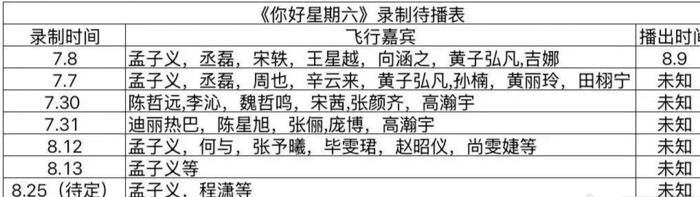看了下《你好星期六》的录制待播表,孟子义后续几乎每一期都参与了录制,比很多常驻成员比如檀健次、王鹤棣等来得都勤。看来芒果台真的很喜欢孟子义