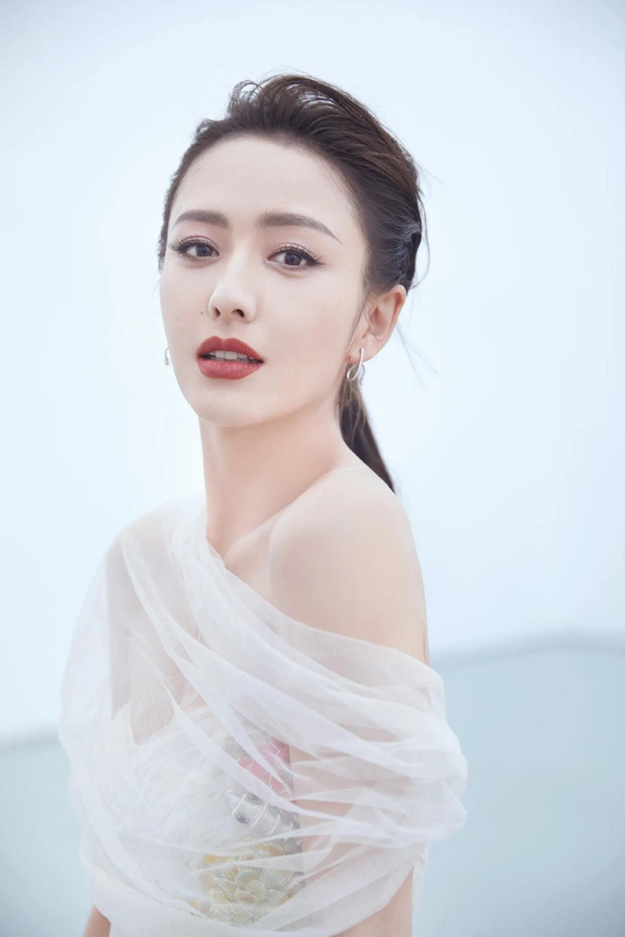 佟丽娅穿白纱裙,露肩、披纱,浅笑摆姿,肤若雪、曲线绝,性感“杀”疯,美到镜头追着跑!