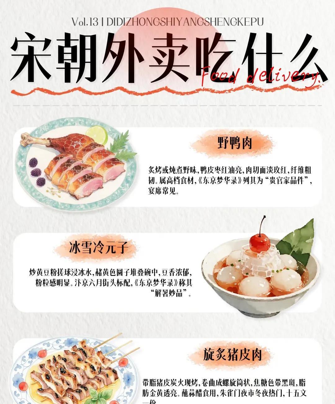 #宋朝的外卖吃什么# 看到宋朝的美食有种想穿越回去的冲动。宋朝是一个非常注重文学的朝代,#宋朝# #古代版外卖# #宋朝饮食# #古代外卖# #古代外卖文化# #北宋美食# #北宋吃货图鉴# #宋朝人点外卖# 苏东坡先生就是在宋朝创造出来的美好诗词和美味佳品。鼎鼎大名的东坡肉,碳烤生蚝,在宋朝人们也会给美食赋予文学的名字。看着这些菜品口味比较清淡不油腻,好几种甜品非常适合夏天食用。有喜欢研究美食的朋友们不放来做一下试试。