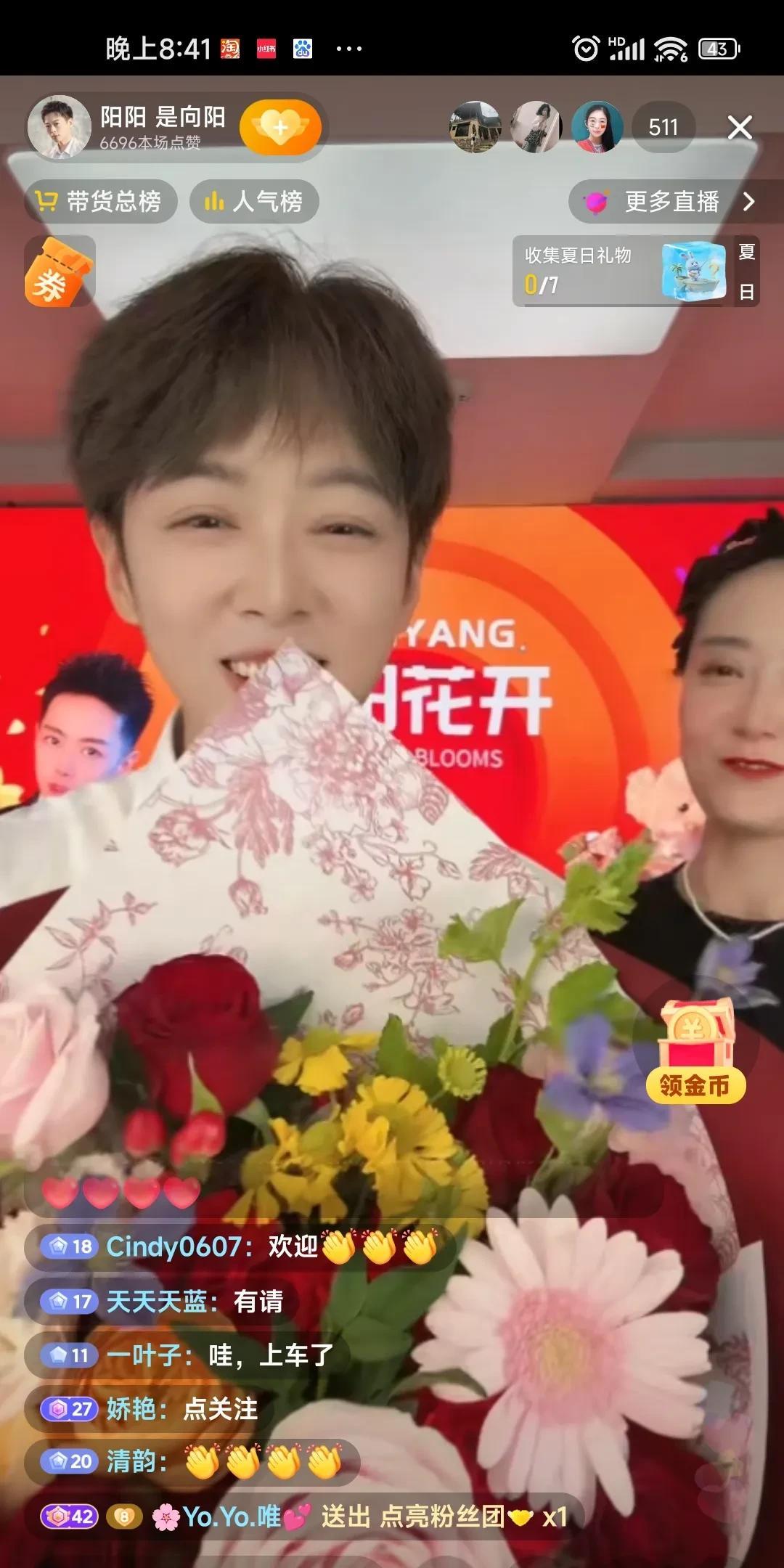 阳阳今天在自己的直播间直播了,向阳花开。直播间里气氛相当好,一会的功夫,在线人数