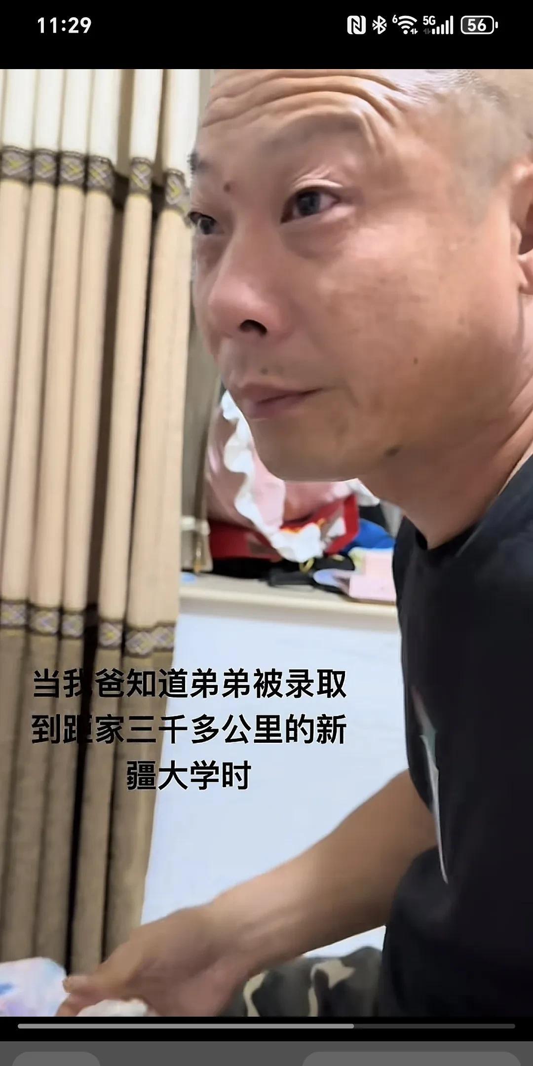 当我爸知道弟弟被录取到距家三千多公里的新疆大学时~ 我弟说第一次看他哭。 儿子第一次出远门爸爸有太多的不舍,可以理解,不要哭,你放心,新疆是个特别好的地方 好多美景,趁着上学,趁着年轻可以多出去玩玩。 回来给你带个美美的新疆儿媳妇儿,那高兴的呲着大牙。 别担心了,新疆的地里西瓜免费吃,葡萄也是,拌面免费加面,不给孩子饿着。