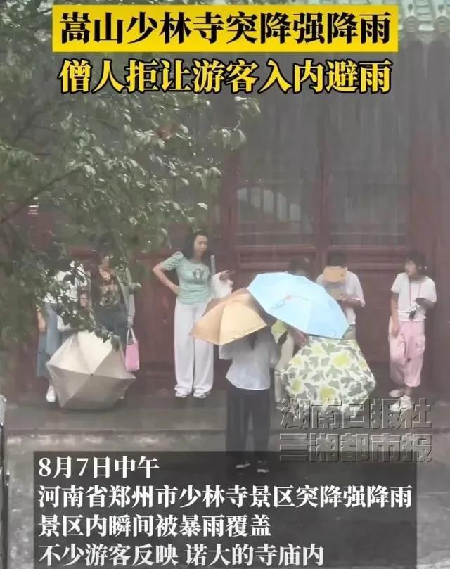 郑州特大暴雨!少林寺拒绝游客入屋避雨!理由是屋里有文物~~~ 网友:以前称佛门净