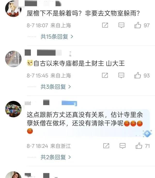 郑州特大暴雨!少林寺拒绝游客入屋避雨!理由是屋里有文物~~~ 网友:以前称佛门净地,已一去不返了。不要再捐香火钱了,他们做生意房地产和别的行业,都赚够了