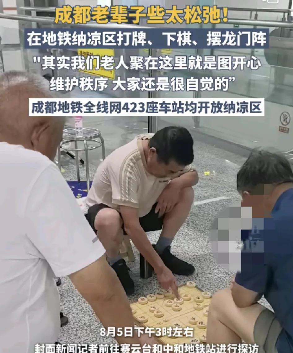 #头号创作者激励计划#成都地铁站内,路上老人拿着垫子、凳子、杯子过来纳凉,对于老人家来说,大热天能够在地铁上蹭空调,又有自己的伙伴们一起搓麻将下棋等等,既不影响公共场所的秩序,又可以有休闲的地方是挺好的,在地从地铁地铁站方面也做得很人性化,据说这些老人已经连续第3年在夏天时来到地铁站内哪两了。