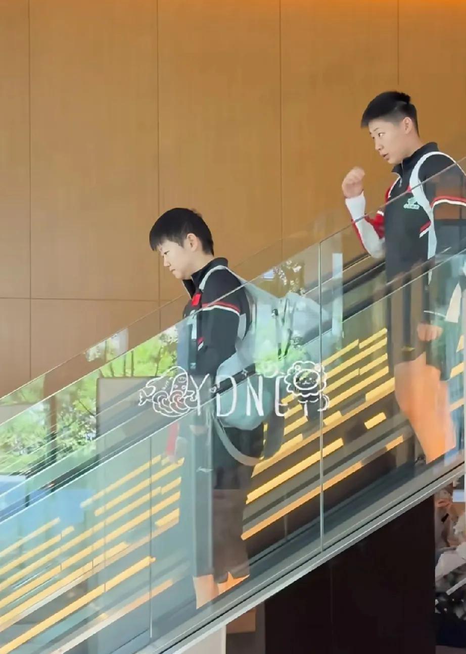 吃过早饭的莎莎和闫禹橦, 坐电梯下楼去上训, 这次佳佳没来成, 莎莎带着17岁左手小将闫禹橦, 即是陪练又让小将见见世面。 今晚莎莎首场比赛, 对阵韩国选手朱芊曦, 两人也是老对手了, 期待莎莎晚上的精彩表现, 莎莎加油! 没有比赛的耶耶, 还是要继续上训, 和小牛训练的多么开心, 明天将对阵韩国吴晙诚, 王楚钦加油!