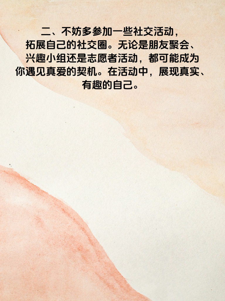 一、属兔的小伙伴们,下半年可是脱单的大好时机哦!想要成功邂逅那个特别的人,首先要保持积极乐观的心态。心态好了,整个人散发的气场都不一样,更容易吸引他人靠近。 二、不妨多参加一些社交活动,拓展自己的社交圈。无论是朋友聚会、兴趣小组还是志愿者活动,都可能成为你遇见真爱的契机。在活动中,展现真实、有趣的自己。 三、注重自身形象也是关键。不需要过度打扮,保持整洁得体、展现出自己独特的风格就好。良好的外在形象能给人留下不错的第一印象。 四、聊天时要真诚倾听对方,适当分享自己的想法和经历。学会用幽默化解尴尬,让交流轻松愉快。记住,真诚和有趣是吸引异性的法宝。只要属兔的你用心去做,下半年脱单大吉就很有可能降临到你身上啦!快来开启属于你的浪漫爱情之旅吧!