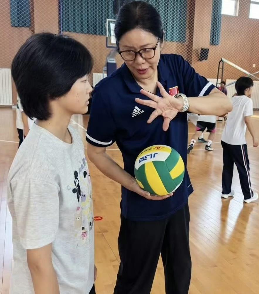 郎平教练果真是热爱排球啊!退休后一点都不闲着,今年又去了鄂尔多斯指导草原村排,已经连续2年去草原村排了!指导小队员们排球技术细节,依然是那个对待排球一丝不苟,认真负责的郎平教练啊!眼镜一带,感觉郎导又回到了中国女排国家队!前中国女排的队员白云也带着女儿去向郎导请教问题,郎导说还要线上进行指导!