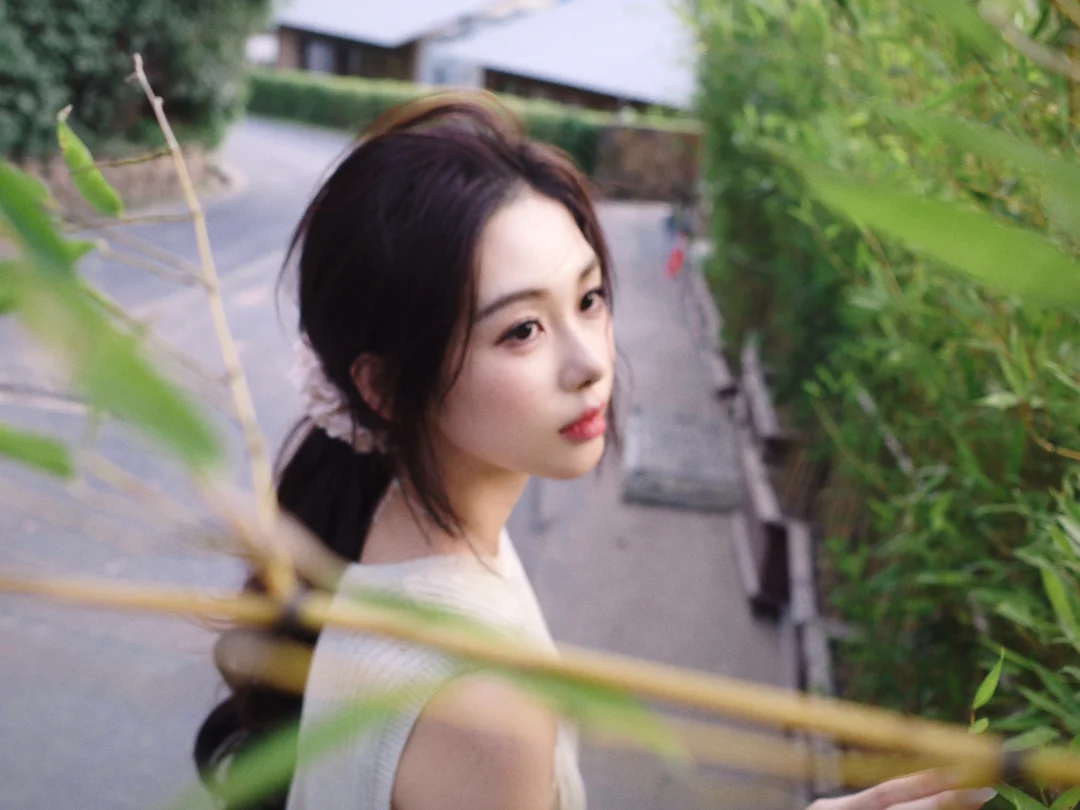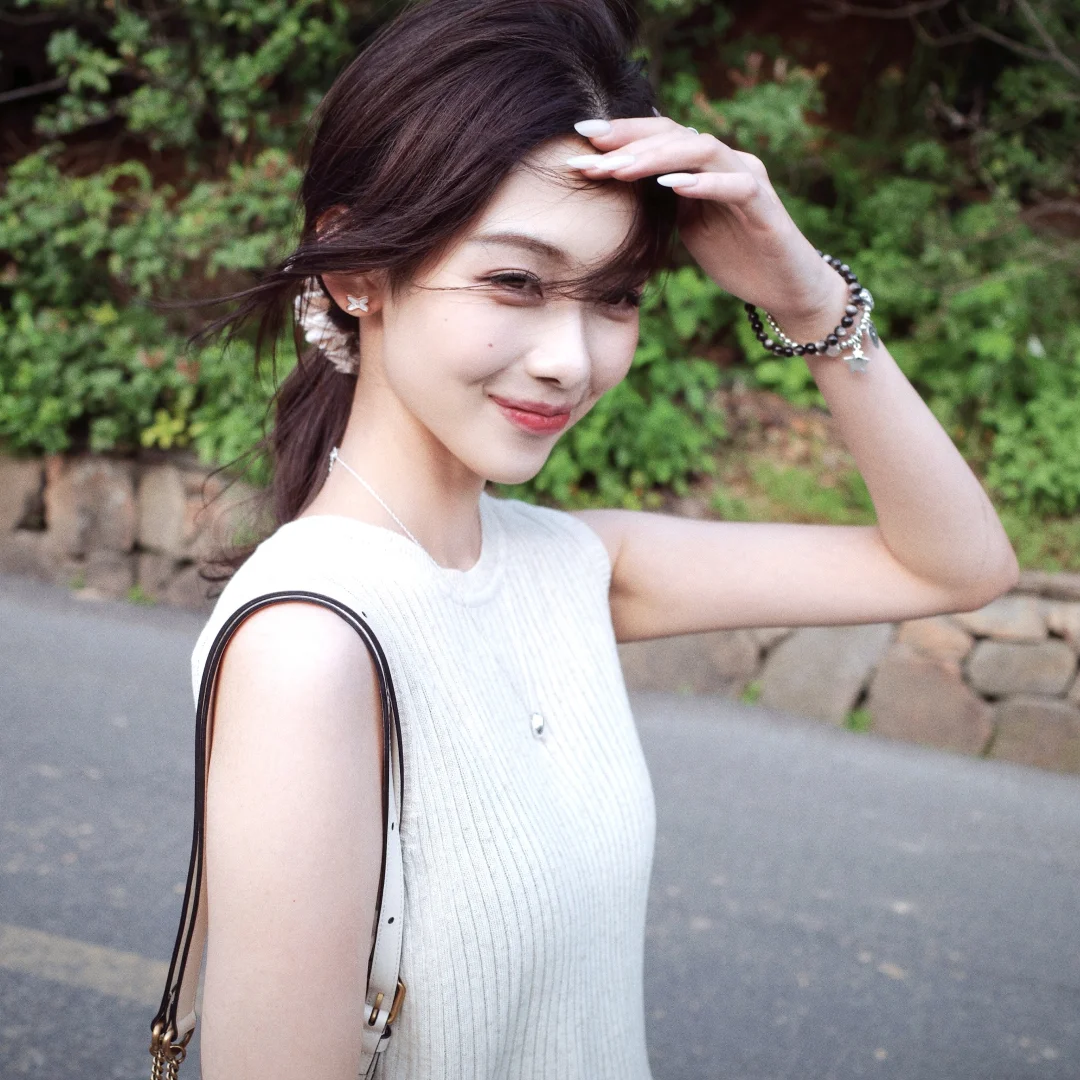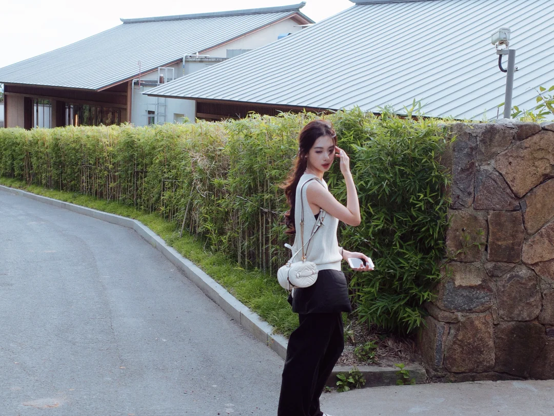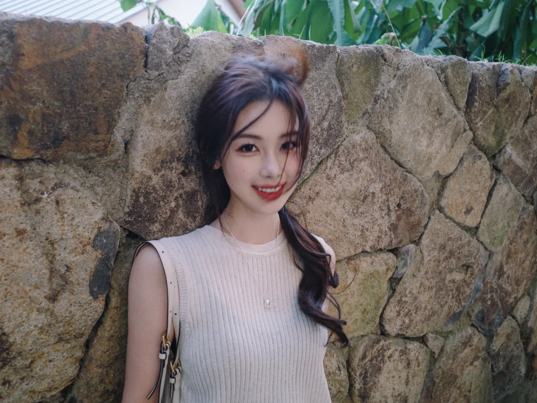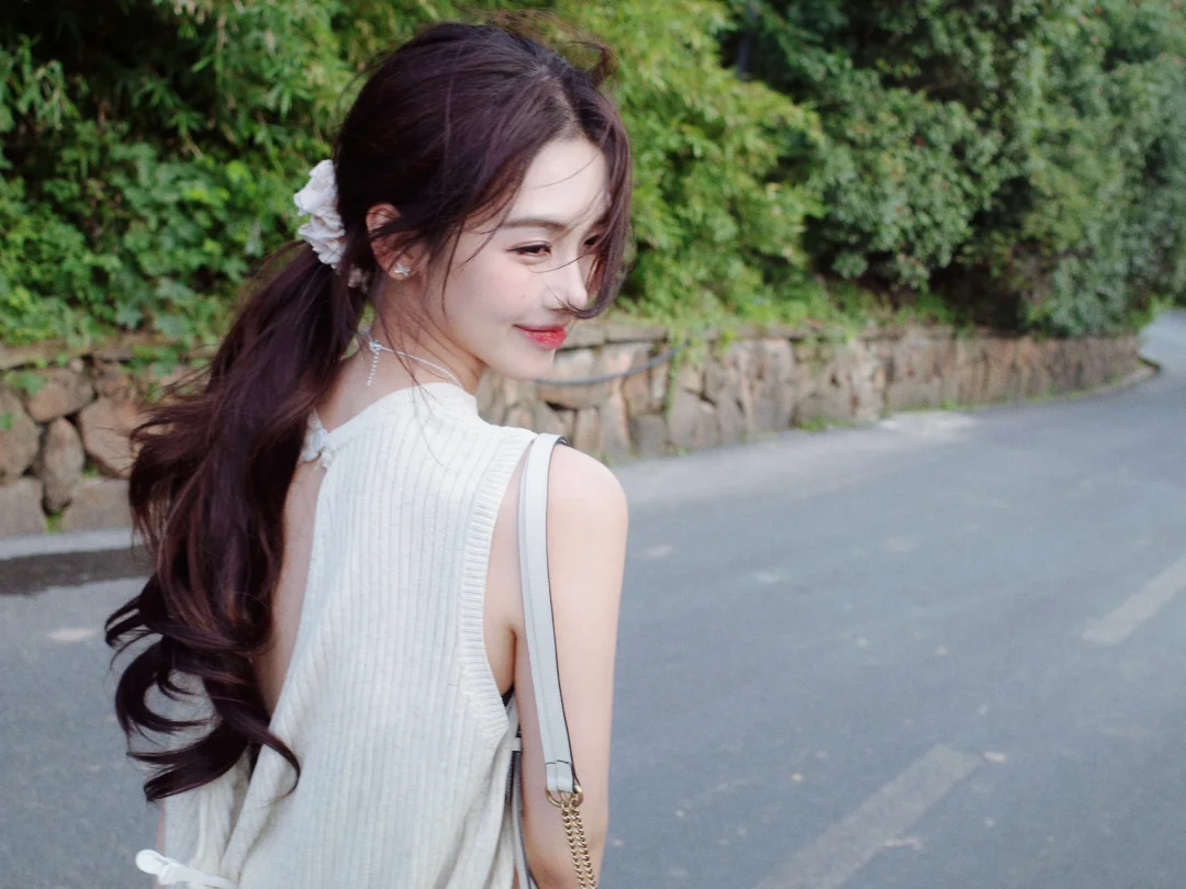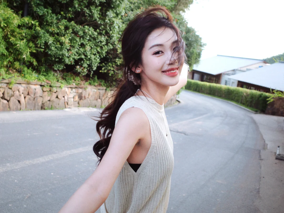 陈瑶秋日穿搭,咖啡色背心牛仔,轻曼时尚