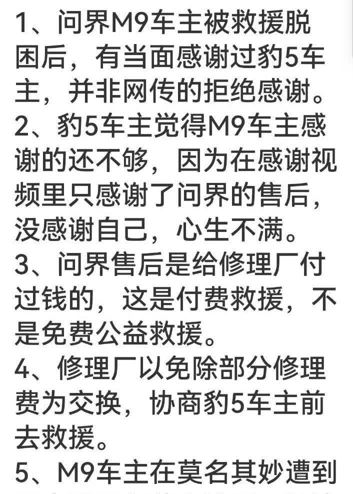 上来就道德绑架问界M9车主,然后就说不要将个人行为与品牌绑定,这是有精神分裂吗? 还有问界M9车主是像赛力斯售后求救,然后赛力斯售后联系的汽修厂,出钱让汽修厂找车救援,并不是问界M9找的方程豹去救援 你收钱救援,还要让人家怎么谢谢你,赛力斯售后花钱了,当然要谢谢赛力斯,赛力斯不花钱,你方程豹会出现在这里吗?