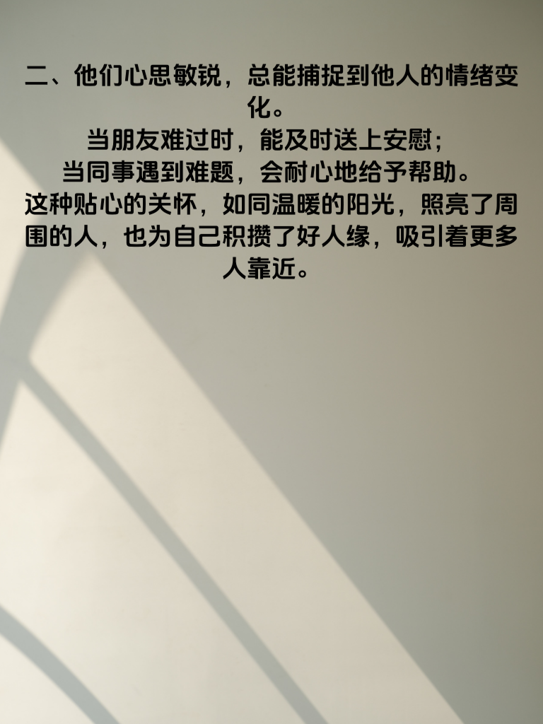 一、属兔的人,天生温柔细腻,仿佛春日里的微风,能轻轻拂动他人的心弦。这便是他们桃花绽放的一个秘密——以温柔示人。在与人相处中,轻声细语,善解人意,会让身边的人如沐春风,不知不觉间被吸引。 二、他们心思敏锐,总能捕捉到他人的情绪变化。当朋友难过时,能及时送上安慰;当同事遇到难题,会耐心地给予帮助。这种贴心的关怀,如同温暖的阳光,照亮了周围的人,也为自己积攒了好人缘,吸引着更多人靠近。 三、属兔人性格随和,不喜欢与人争执。他们懂得包容他人的缺点,用宽容的心去对待每一个人。这种豁达的胸怀,让他们在人际交往中如鱼得水,身边围绕着各种真诚的朋友,其中不乏可能发展出浪漫故事的有缘人。 四、而且,属兔人往往有着丰富的内心世界,他们热爱生活,对美好的事物充满向往。无论是一本好书、一场画展,还是一次漫步在花海中的惬意时光,都能让他们沉浸其中。这份对生活的热爱,也会感染他人,吸引那些志同道合的人走进他们的世界,开启浪漫的桃花之旅。