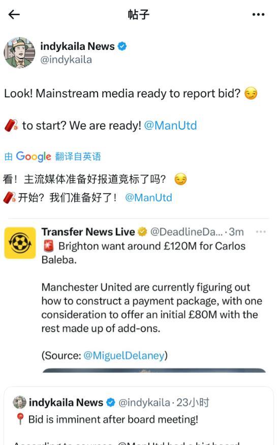 要价1亿!博主:巴莱巴与曼联达个人协议!他要求布莱顿今夏放人。上个月曼联谈老詹