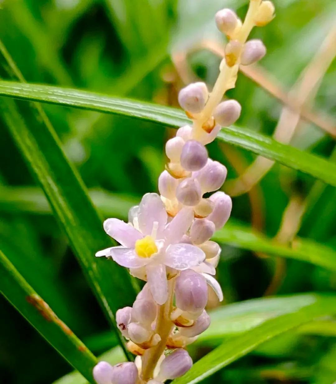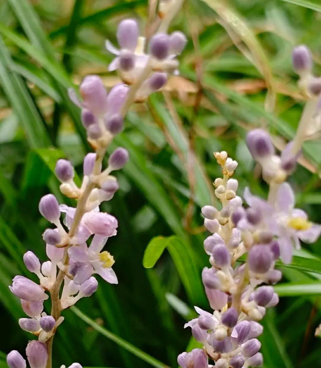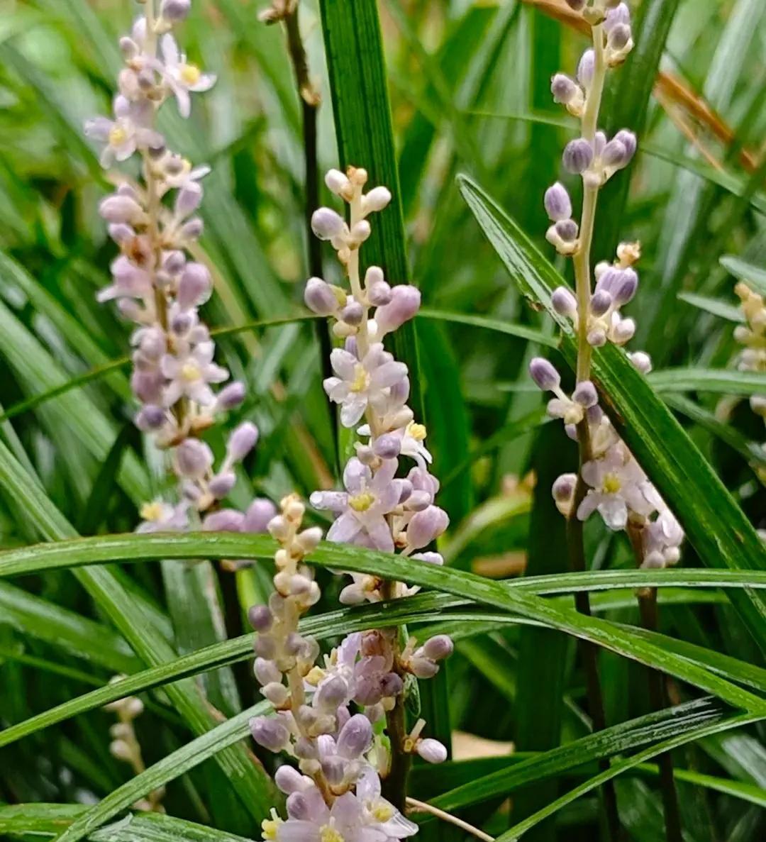 山麦冬花开清新脱俗 今年夏季京城雨水很充沛,小区绿化带里的山麦冬花开的格外生机勃勃!细长如兰的绿叶流畅而飘逸,叶间点缀着的淡紫色或白色的小花,六瓣轻展,托着嫩黄蕊的成穗状花葶亭亭玉立,远观酷似浪漫的薰衣草,在风中轻轻摇曳,淡紫高雅的花不张扬悄然的绽放,静静地散发着温柔的气息,释放着属于自已的不动声色的美好。给人以清新、雅致的感觉,令人心旷神怡! 山麦冬是天门冬科所属多年生草本植物,因它的叶片似兰花,根部像三七,又名土麦冬或兰花三七。花期5-8月。耐寒又耐阴的山麦冬,原产于我国,在我国南、北方均有广泛栽种,是非常好的地被植物,被广泛用于城市园林绿化、庭院装饰,为环境增添自然野趣。 山麦冬还是一味中药材,其根部可入药。我国最早的药物学著作《神农本草经》,将其列为上品,称赞其拥有“久服轻身,不老不饥”的滋补和养生功效。在《名医别录》中,则记载其“微寒”,可用于“疗身重目黄,心下支满,虚劳客热,口干燥渴”等病症,明确了其养阴生津、清热,润肺清心的功效,和可用于治疗干咳、心烦失眠和便秘的作用。 山麦冬碧绿的叶和每一朵清新的小花,都是大自然用最细腻的笔触绘成,是大自然美好的馈赠,优雅的叶形和持久的花期备受人们青睐。 #今日随手拍#