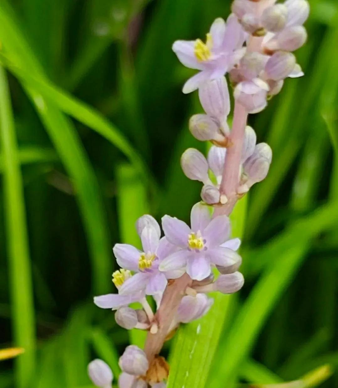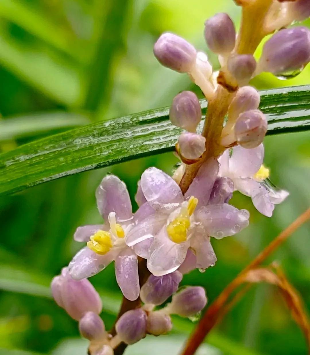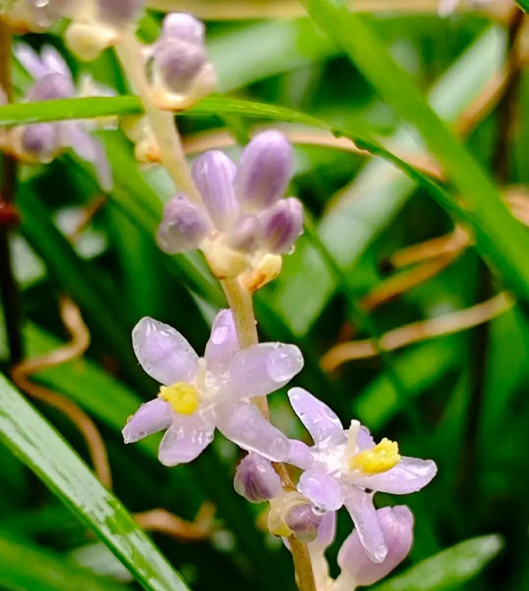山麦冬花开清新脱俗 今年夏季京城雨水很充沛,小区绿化带里的山麦冬花开的格外生机勃勃!细长如兰的绿叶流畅而飘逸,叶间点缀着的淡紫色或白色的小花,六瓣轻展,托着嫩黄蕊的成穗状花葶亭亭玉立,远观酷似浪漫的薰衣草,在风中轻轻摇曳,淡紫高雅的花不张扬悄然的绽放,静静地散发着温柔的气息,释放着属于自已的不动声色的美好。给人以清新、雅致的感觉,令人心旷神怡! 山麦冬是天门冬科所属多年生草本植物,因它的叶片似兰花,根部像三七,又名土麦冬或兰花三七。花期5-8月。耐寒又耐阴的山麦冬,原产于我国,在我国南、北方均有广泛栽种,是非常好的地被植物,被广泛用于城市园林绿化、庭院装饰,为环境增添自然野趣。 山麦冬还是一味中药材,其根部可入药。我国最早的药物学著作《神农本草经》,将其列为上品,称赞其拥有“久服轻身,不老不饥”的滋补和养生功效。在《名医别录》中,则记载其“微寒”,可用于“疗身重目黄,心下支满,虚劳客热,口干燥渴”等病症,明确了其养阴生津、清热,润肺清心的功效,和可用于治疗干咳、心烦失眠和便秘的作用。 山麦冬碧绿的叶和每一朵清新的小花,都是大自然用最细腻的笔触绘成,是大自然美好的馈赠,优雅的叶形和持久的花期备受人们青睐。 #今日随手拍#