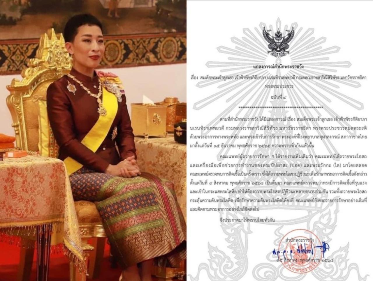 帕公主近况堪忧,靠机器维持生命体征 2025年8月15日王室事务局声明:帕公主殿下自2022年12月15日因心脏病昏迷,在泰国红十字会朱拉隆功医院治疗。医疗团队用Osoth等助其脏器工作,8月9日起公主严重感染入血,现用抗生素治疗并维持血压,团队正密切关注。
