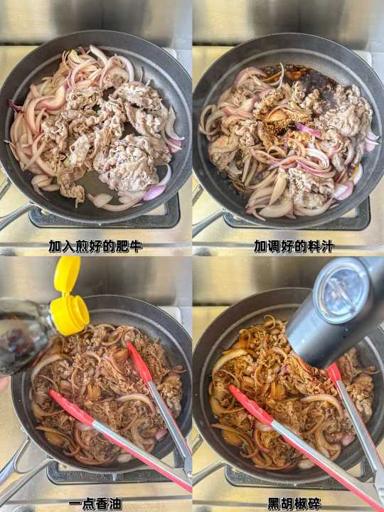 1️⃣ 肥牛直接煎至变色盛出(不用焯水更香!)