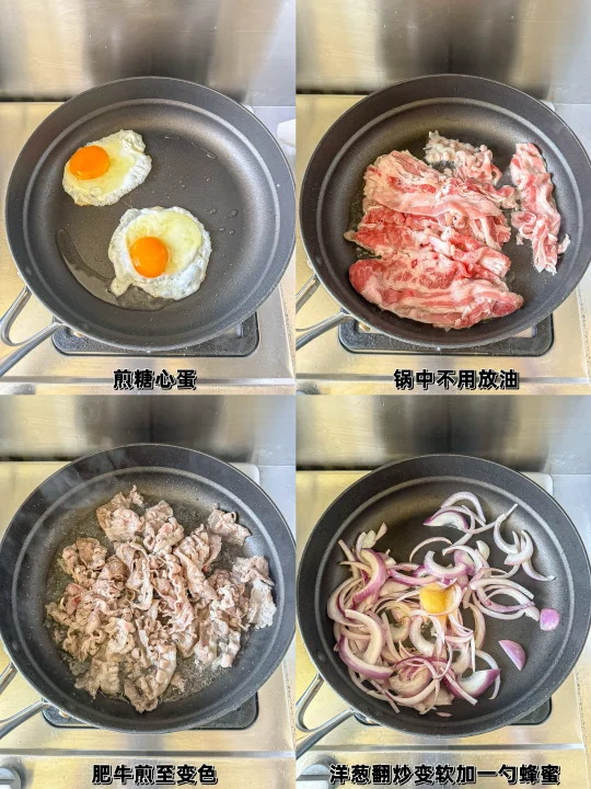 2️⃣ 洋葱丝炒软后加1勺蜂蜜炒出焦糖色