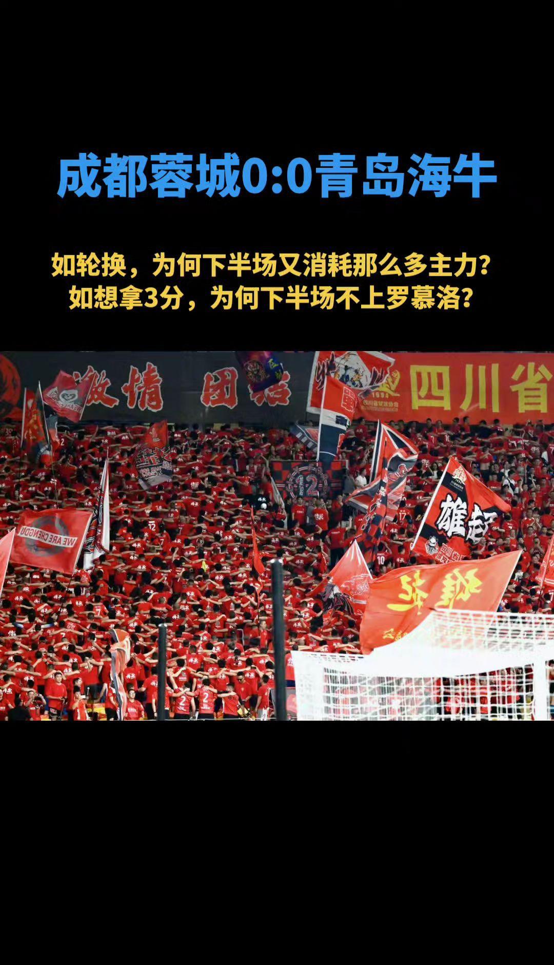 #成都蓉城 0:0#青岛海牛 如轮换,为何下半场又消耗那么多主力? 如想拿3分,为何下半场不上罗慕洛? 这就是夏窗不引援的问题? #中超联赛