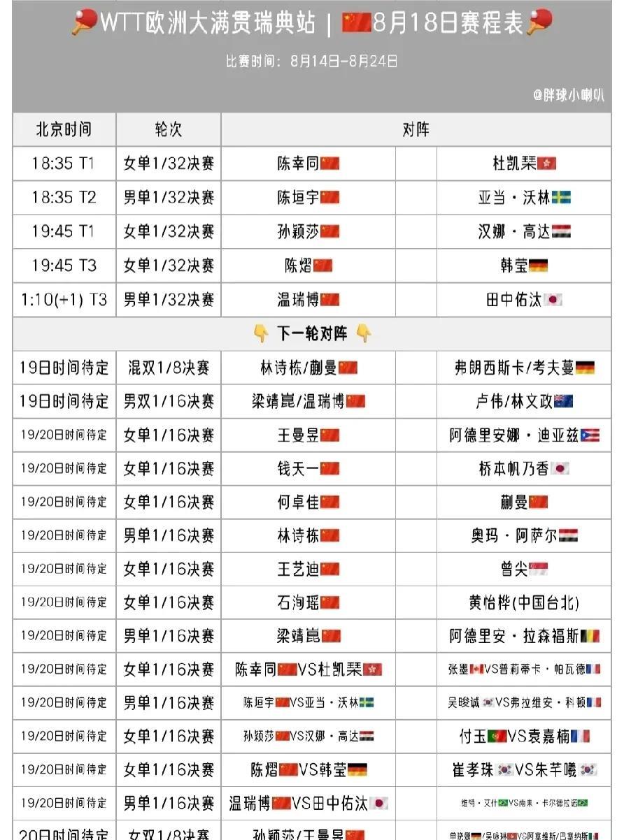 甜甜和小石头在这次瑞典大满贯中,就像极了全村的希望! 第一轮两个都晋级了!但是很不幸的,他们同在上半区!没有种子位就是比较不友好!! 下半区的陈垣宇和温瑞博比较悬,能冲几强是几强了!!希望这两个"相依为命"的小将在下半区能给个惊喜!! 希望这次大满贯只有希望,不要有如果!!面对欧洲选手,个个都不弱!国乒队员们迎难而上!!加油加油!![加油][加油] #头号创作者激励计划#