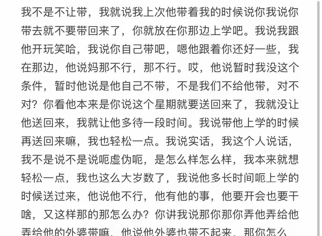 我预料到了带娃很辛苦 也预料到了开支是比较大的 万万没想到老鹅只给1000块,这还是真不够 前几天刷到土家老鹅家的事,我整个人都懵了——他给带娃的老妈每月1000块,网友吵翻了天,有人说抠门,有人说他是真没办法。这事儿吧,越想越觉得像咱身边的家常理短,扎心又真实。你说这亲情和钱,到底该咋掰扯清楚? 说实话,老鹅这1000块一抛出来,我第一反应是“不是吧?”。国家统计局说,三线城市养个娃每月最少得3200块,还不算报兴趣班的钱。这1000块,搁现在买两罐好奶粉就见底了,更别说娃的衣服、零食、头疼脑热的开销,想想都崩溃。 但转头看老鹅的处境——没正经工作,房子还没装修好,估计兜里是真没多少余粮。这就让我想起楼下张阿姨,她儿子每月给800块让带孙,她嘴上说“够够的”,背地里偷偷去超市理货,晚上回来给娃煮面条,自己啃馒头。你说这叫啥?是当爹的敷衍,还是生活把人逼到这份上了?我是越想越郁闷。 本来以为牟妈妈会硬气点,说不带就不带,毕竟带娃比上班累多了——我姐带娃那阵,每天凌晨两三点才睡,说“比打三份工还崩溃”。但牟妈妈呢?一边喊着“想歇歇”,一边还是让西西待到开学,你说这图啥? 有人说,过日子就像熬粥,你多搅两下,我多添把火,计较太多就糊了。牟妈妈心里跟明镜似的:小月亮要上班,亲家要带孙子,老鹅又指望不上,她不接这担子,娃咋办?这哪是在算钱,是在算“一家人”这仨字的分量。老实讲,换作是我,未必有这股子韧劲儿。
