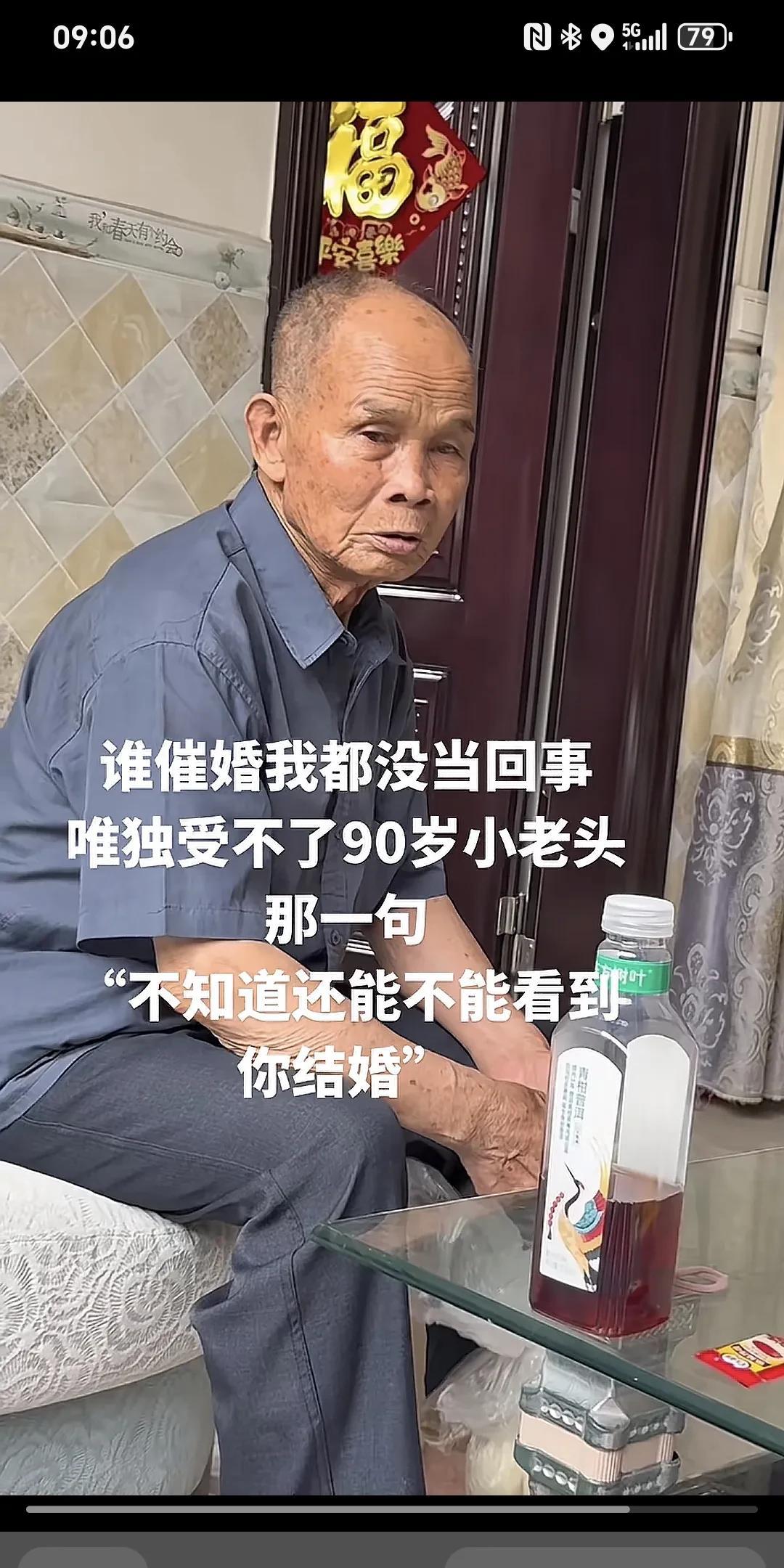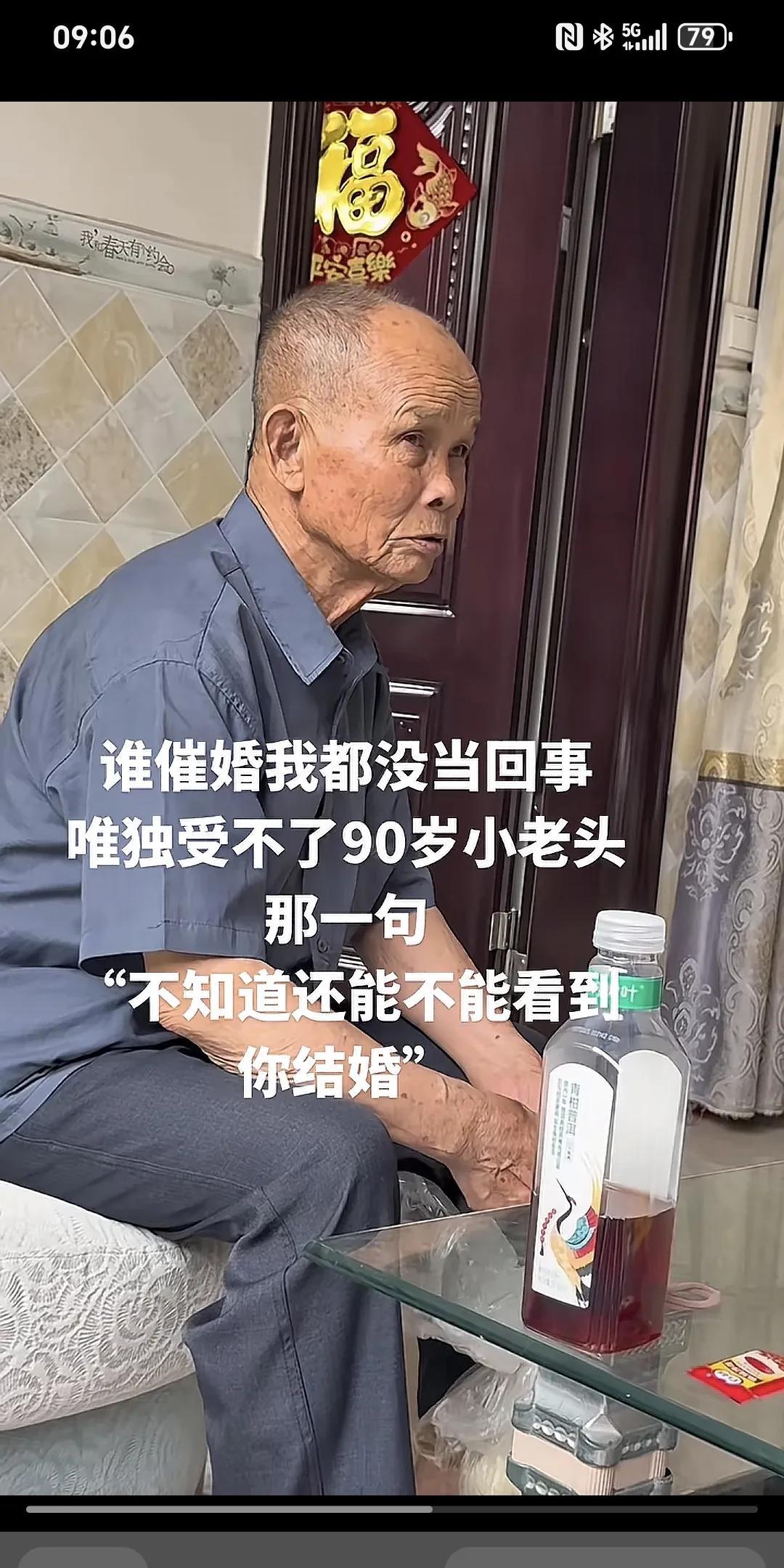 谁催婚我都没当回事,唯独受不了90岁的小老头那一句,我能不能看到你结婚~ 每次回趟老家,面对催婚是难免的,谁催我结婚我觉得还可以再等等,唯独爷爷说“你现在也到了结婚年龄了,也该好好考虑下自己的终身大事了,你们这代人呀,就是活的太明白了,所以很多东西都得不到,你看我和你奶奶,稀里糊涂这一辈子还不是过来了,人不要太挑了,对你好就可以了,我们现在年龄又大了,身体又不好,我们也想在有生之年参加你的婚礼。”每次听到这些话,我承认我是慌的。道理我都懂,我也在努力,请多我些时间。 老人希望你成家是后半辈子有个依靠,找个好的照顾你的,父母陪伴不了多久,正常的会帮你找个门当户对且负责,尊重你的想法,那么作为一些子女而言,有的就 会觉得我父母催我不顾我的想法就是对我道德绑架,我不想结婚非要催我 ,要理解尊重老人的想法。 人到哪一个阶段该做什么事情就努力去完成。#催婚# #回家爷爷催婚#